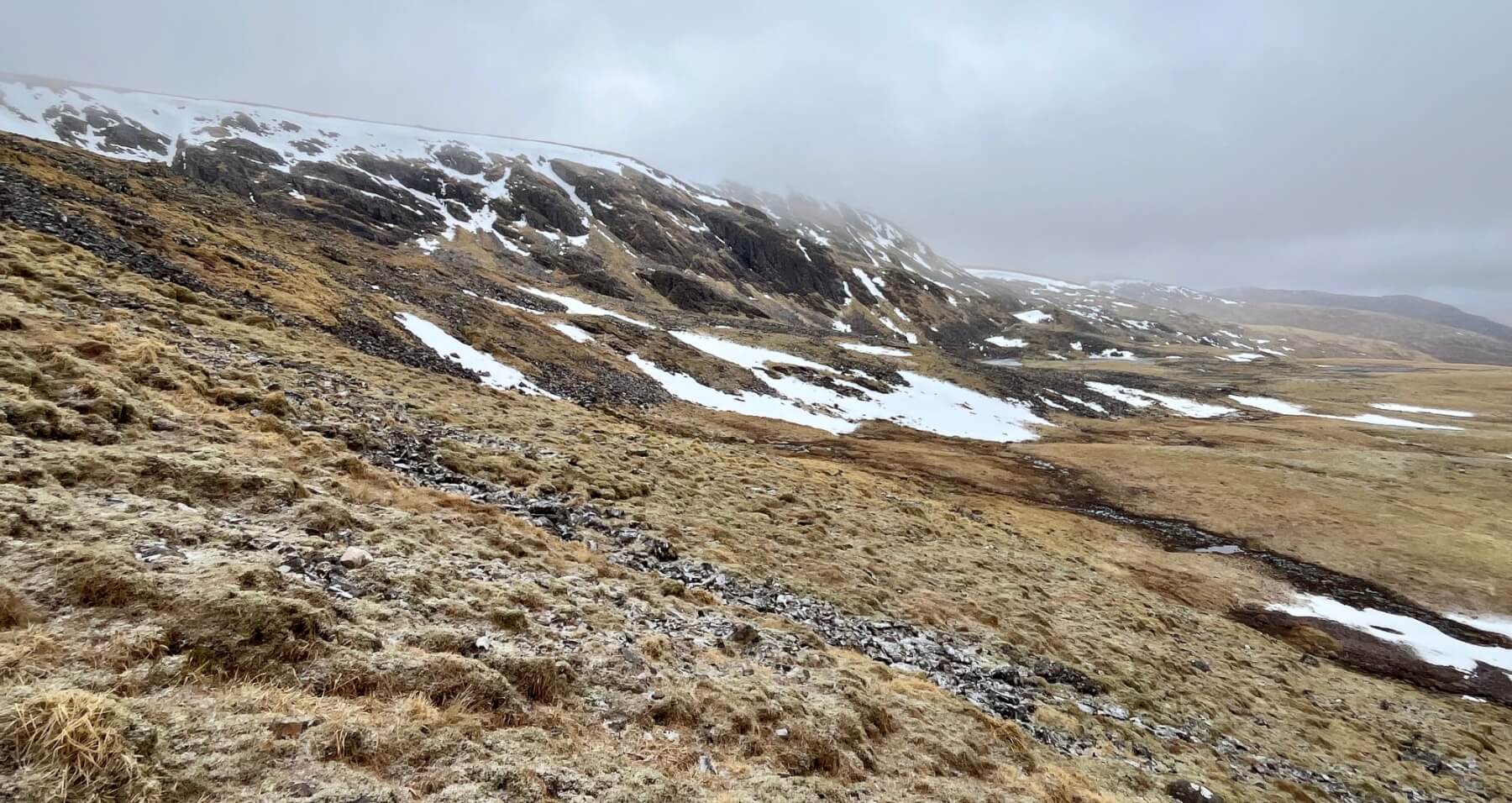 There was hope that the mountains might look a bit more wintry today with up to 2cm of new snow forecast, but what arrived was the lower end of the what was forecast as indicated by the SEPA rain gauge at the Spey Dam showing 0.2mm of rain. The photos below give a good overview of what did, or didn’t, arrive in terms of fresh snow.