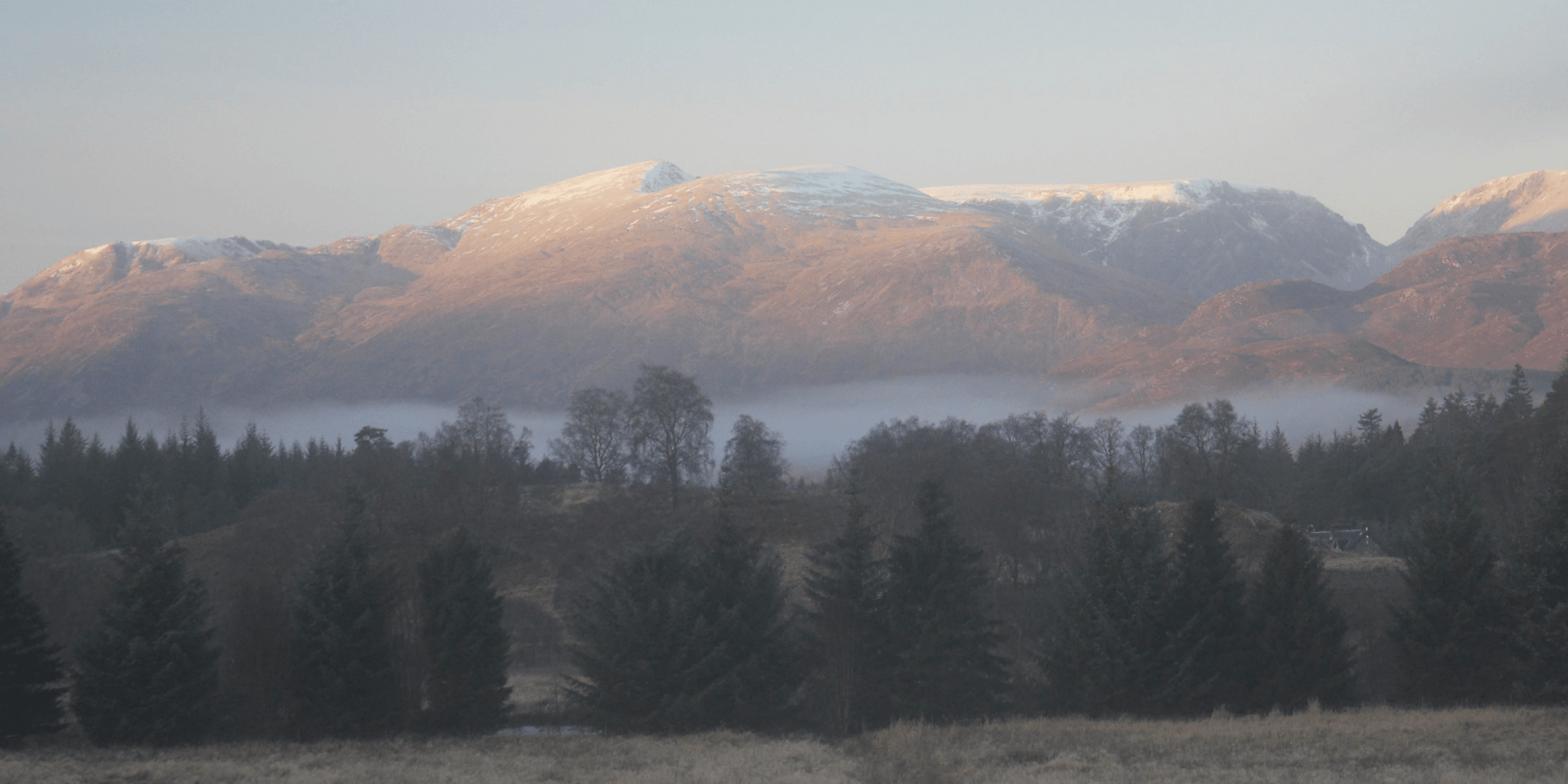 (Above) Clearing haze above the inversion mist gave the promise of a great day, weather-wise, at Creag Meagaidh.