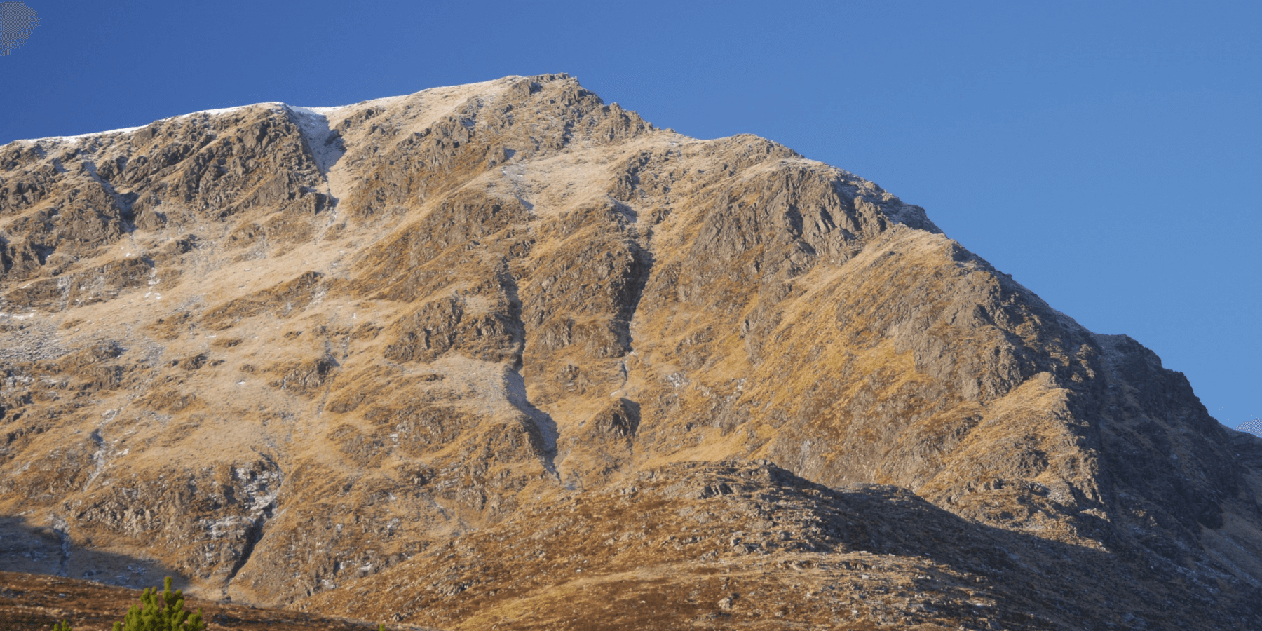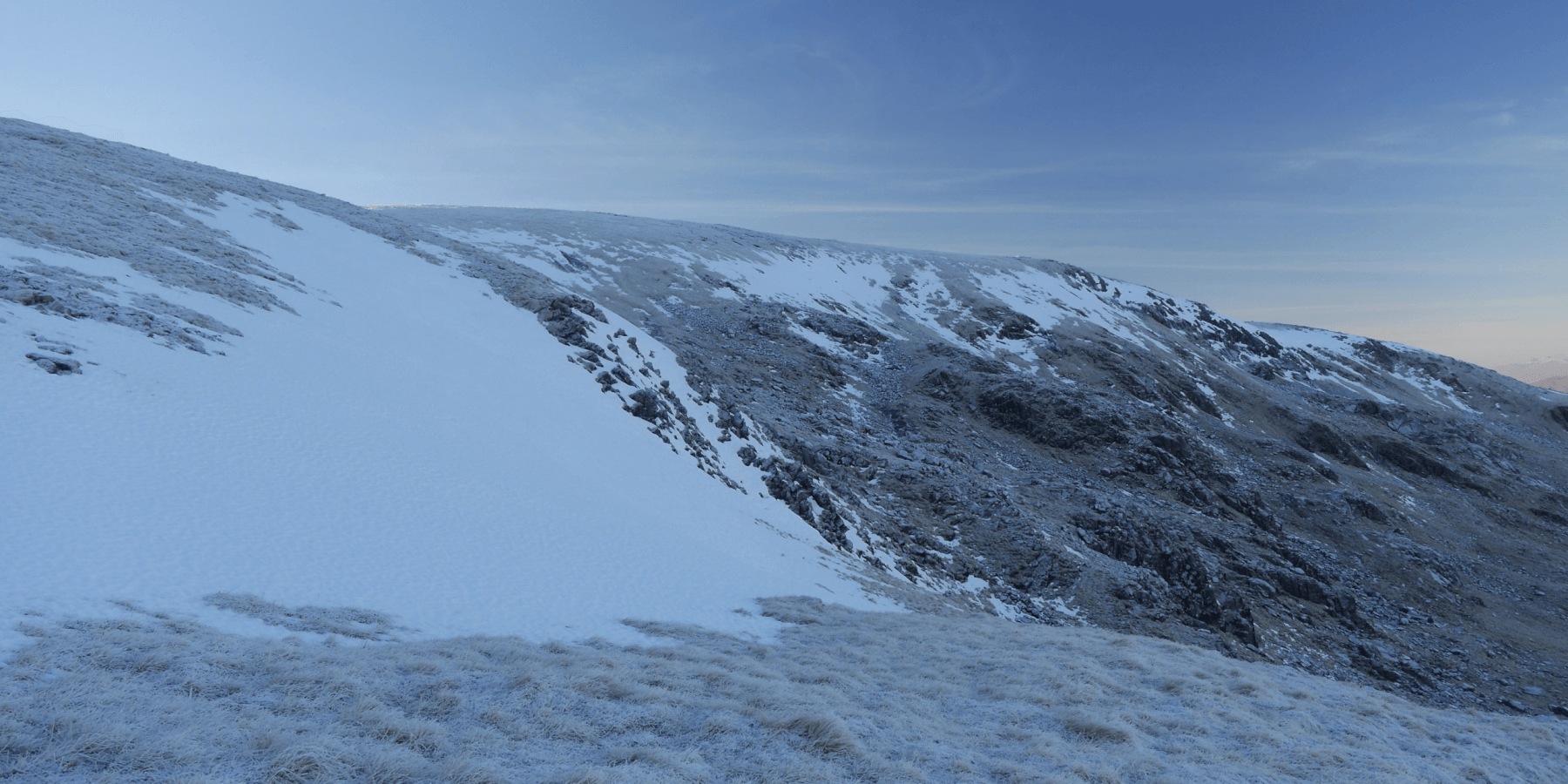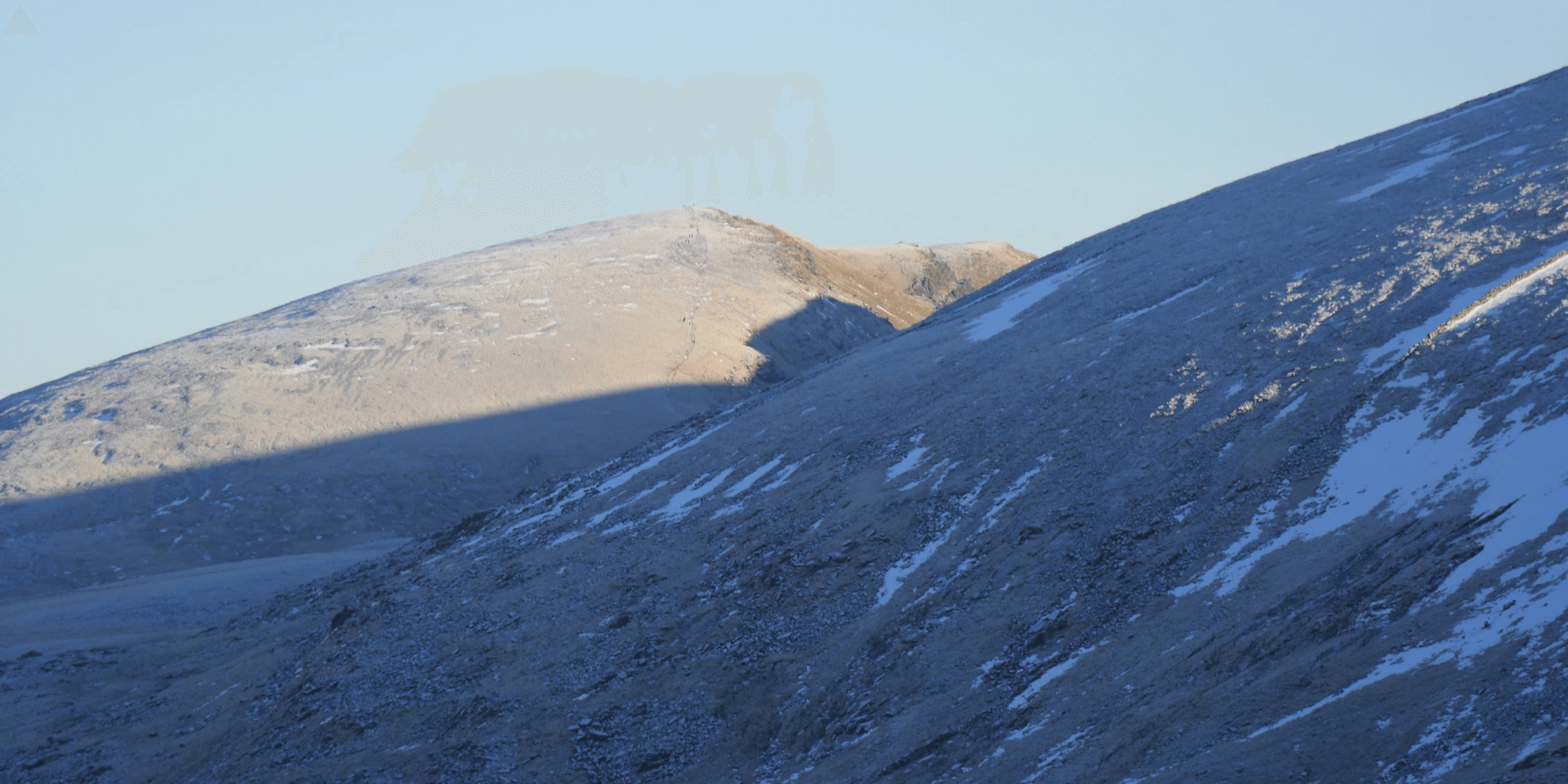 (Above) Reverse angle shot of Beinn a Chaorainn’s East Ridge showing its slightly more wintry-looking NE-facing side.