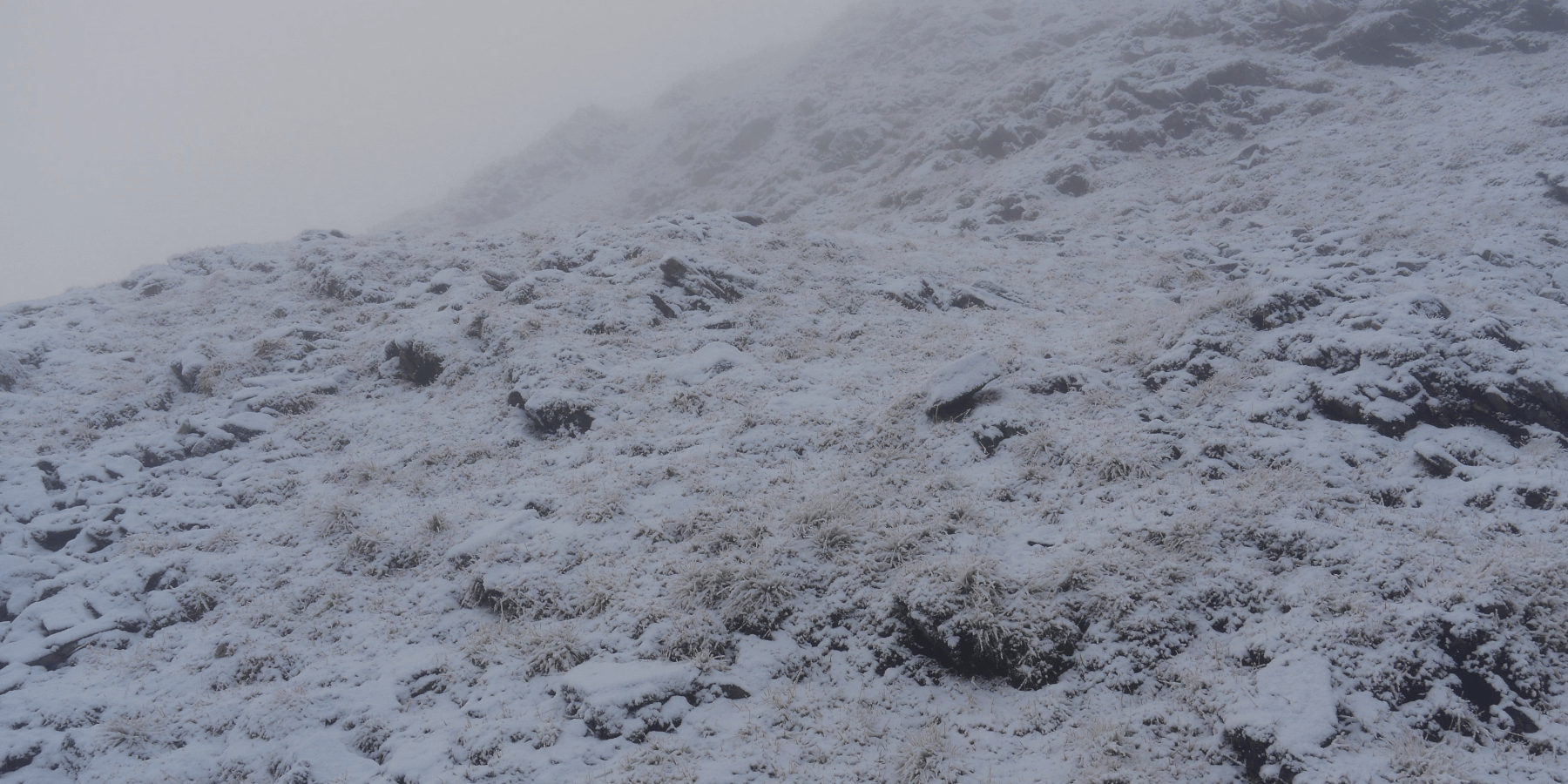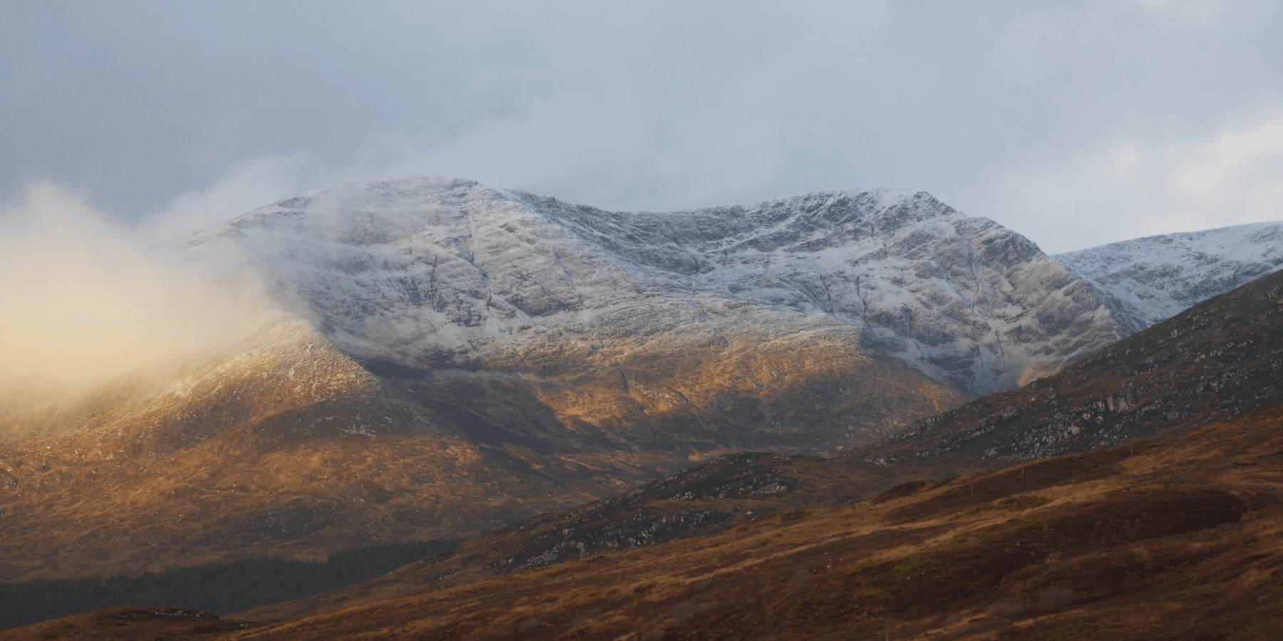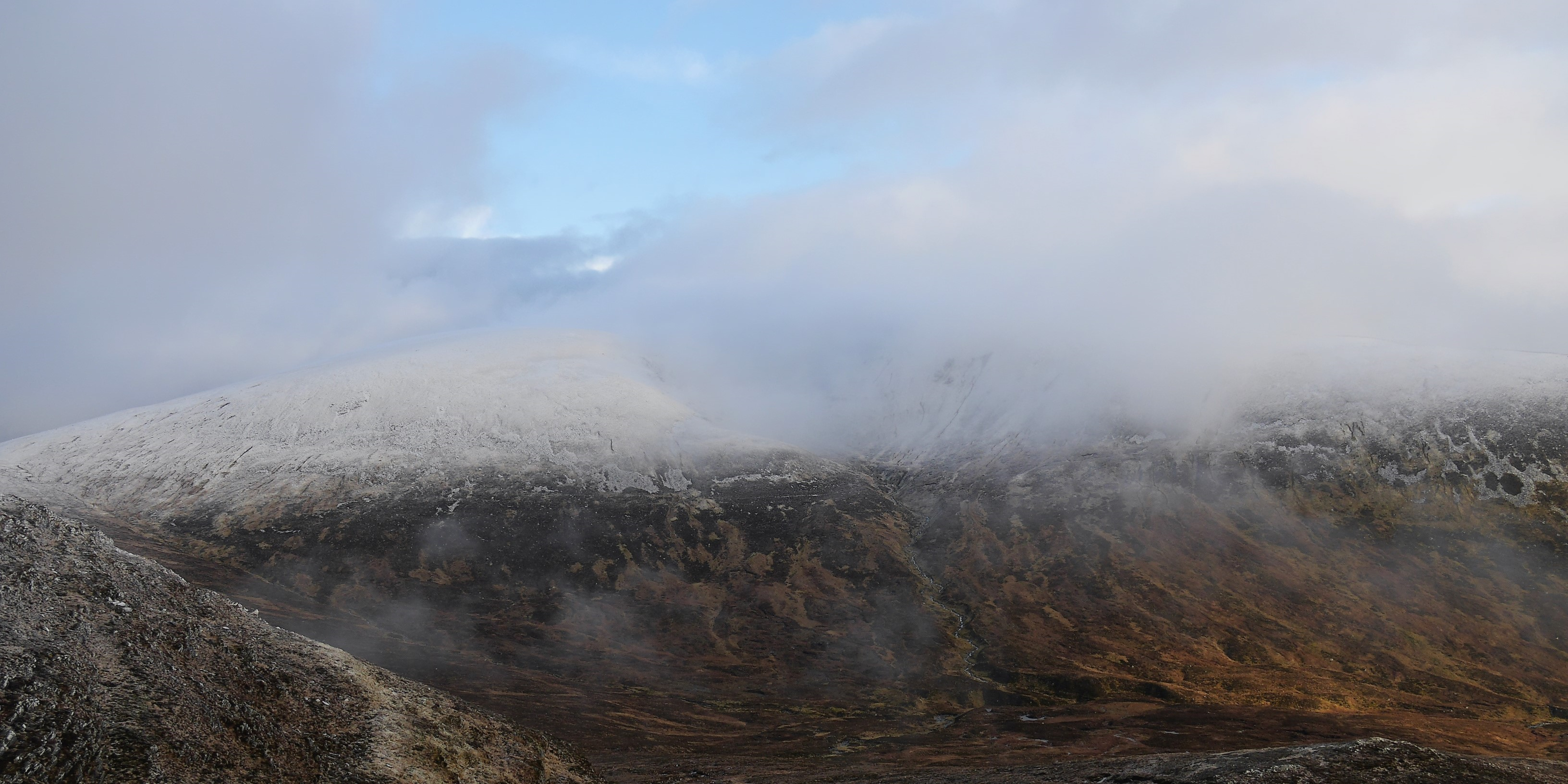 (Above) Beinn a Chaorainn this morning just before some brief snow shower activity.