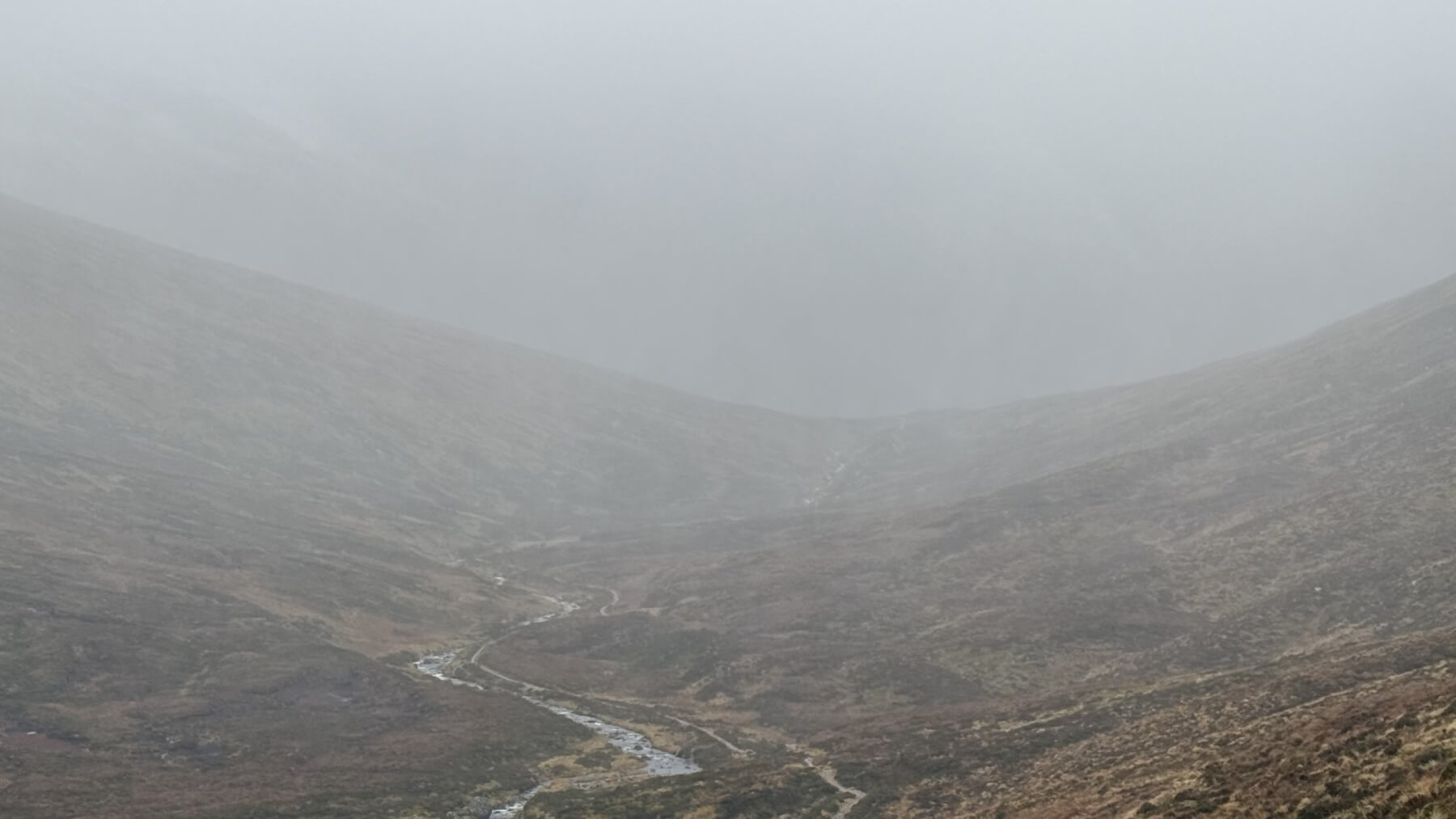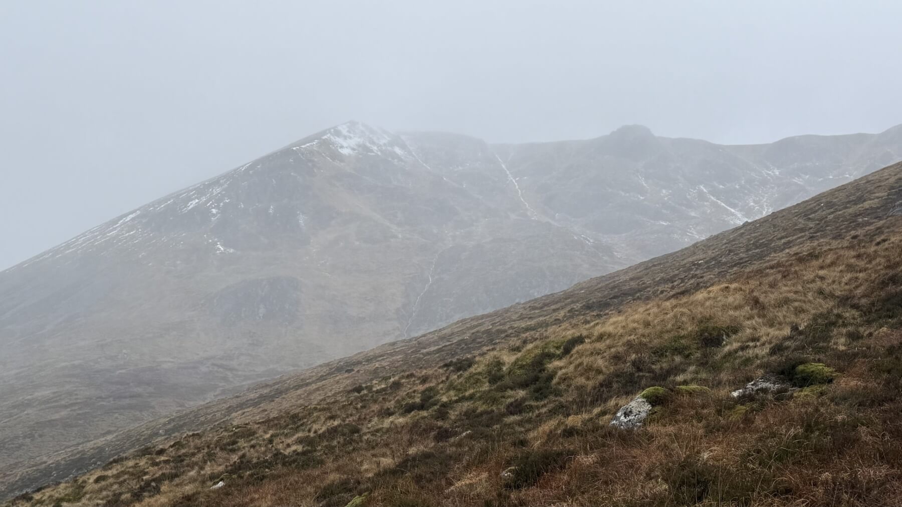 (Above) Most of the time I was out on the hill visibility was similar to this.  However, there were a few brief spells of better visibility as illustrated in the next two photos.