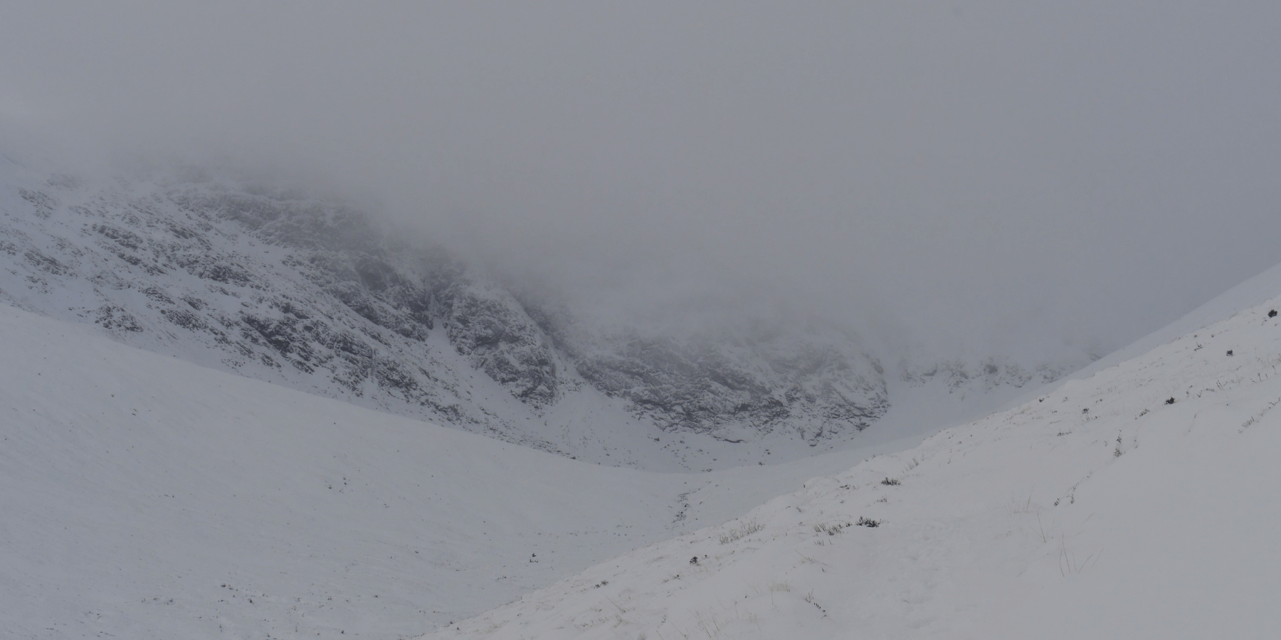 (Above) The crags at the busines end of Coire Ardair. Only a glimpse as visibility was poor for most of the morning above 800m.