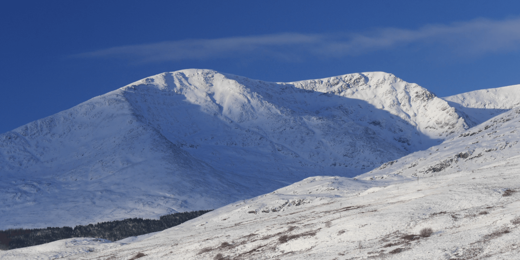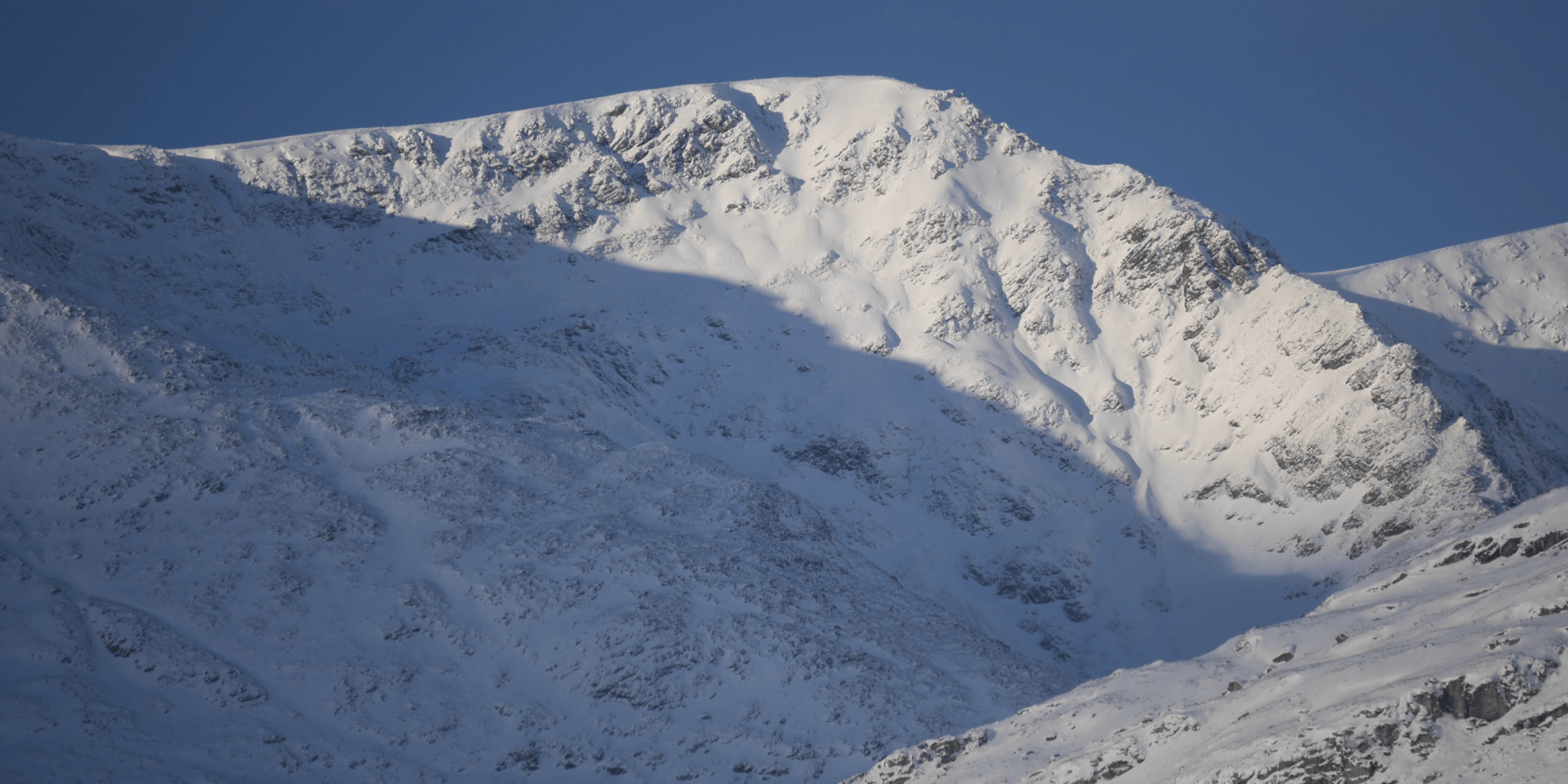 (Above) Beinn a Chaorainn at the far western end of our forecast area. The S and SE-facing flanks of this mountain’s ridges have picked up a fair amount of new snow over the past few days.