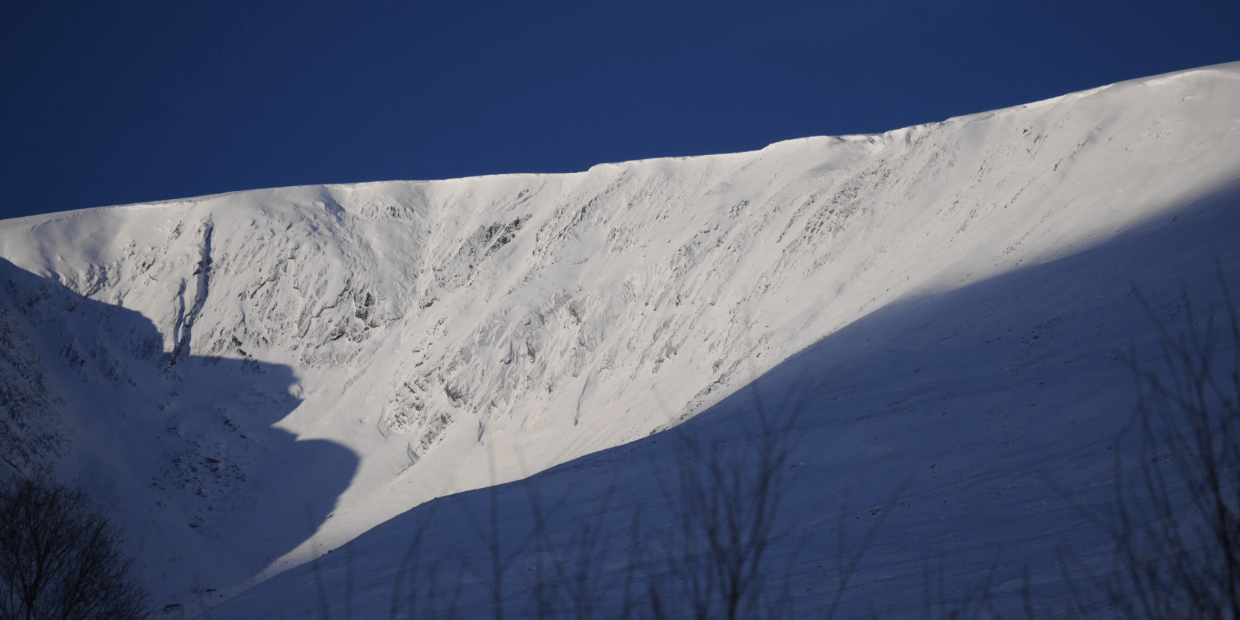 (Above) Coire Dubh. Evidence of recent cornice collapse here but nothing triggered on the steep SE-facing slope below.