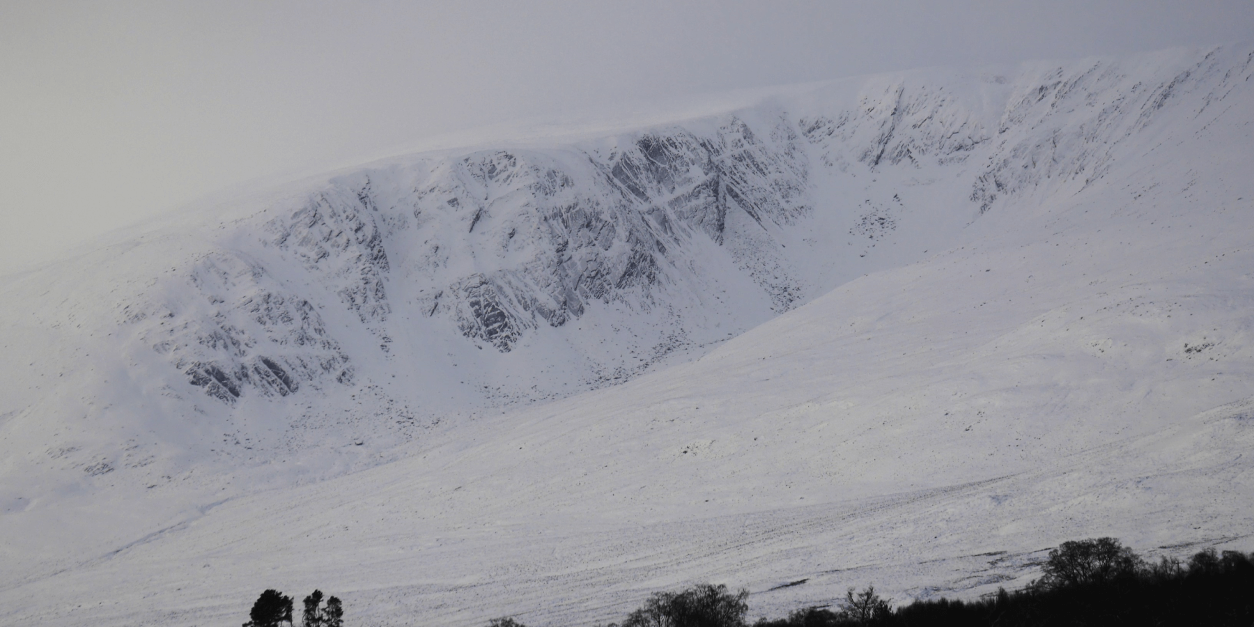 (Above) Coire Dubh, a SE-facing coire viewed from the A86 this afternoon. Note the cornice line, small but expected to grow a little overnight.