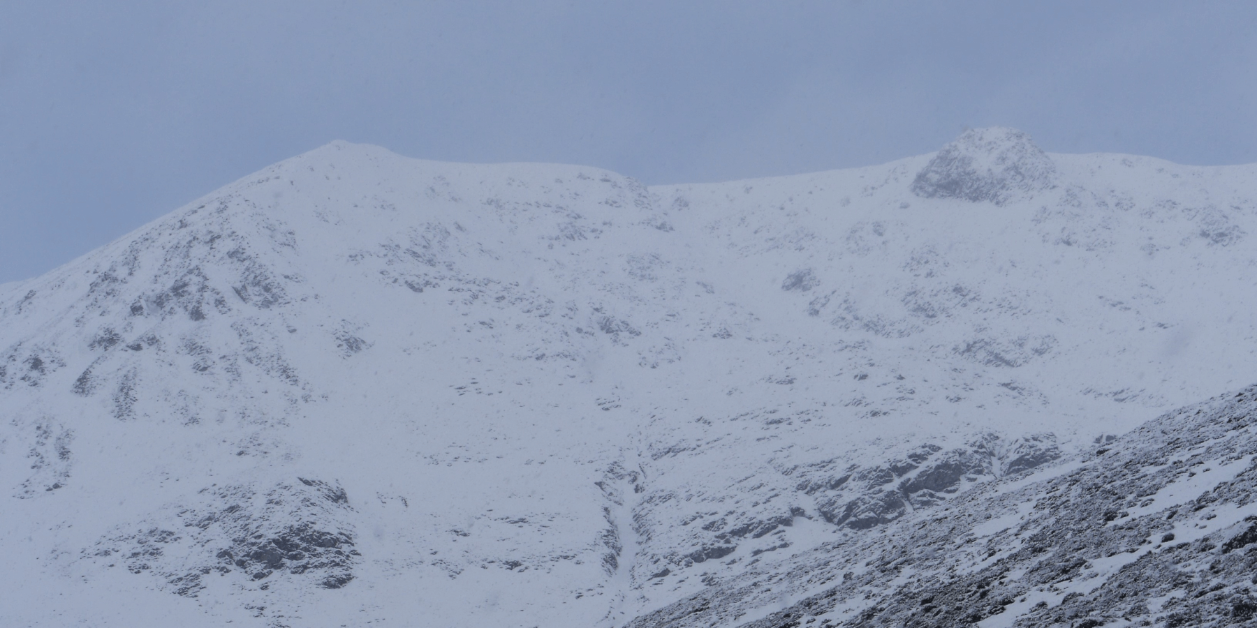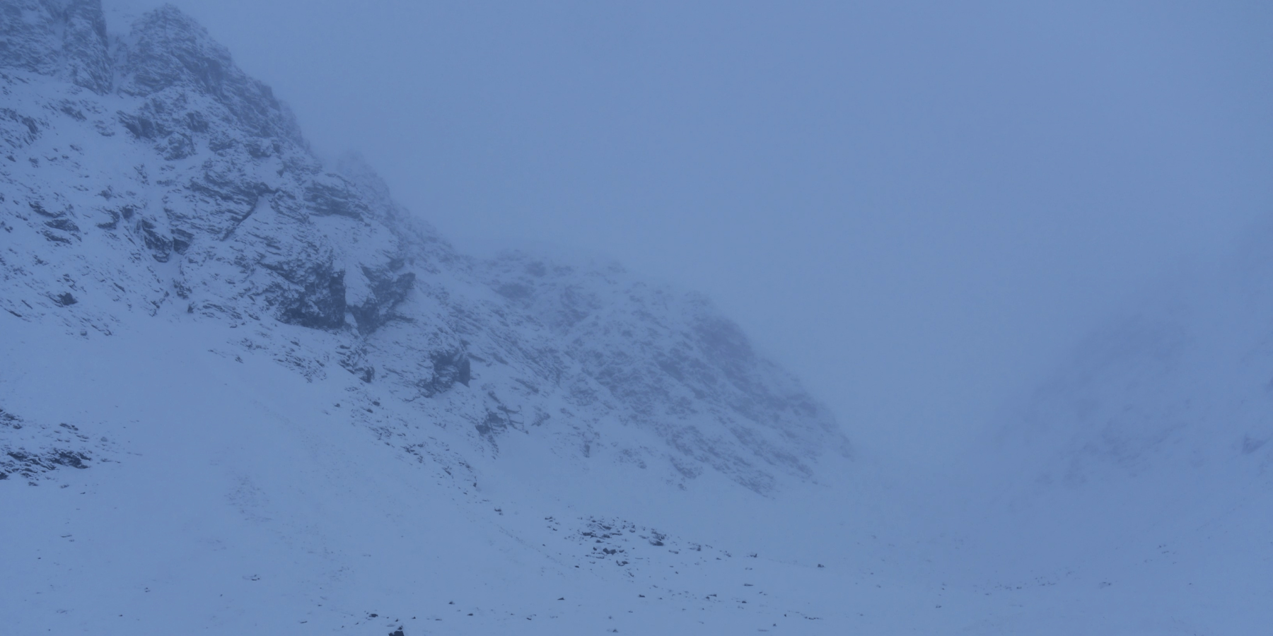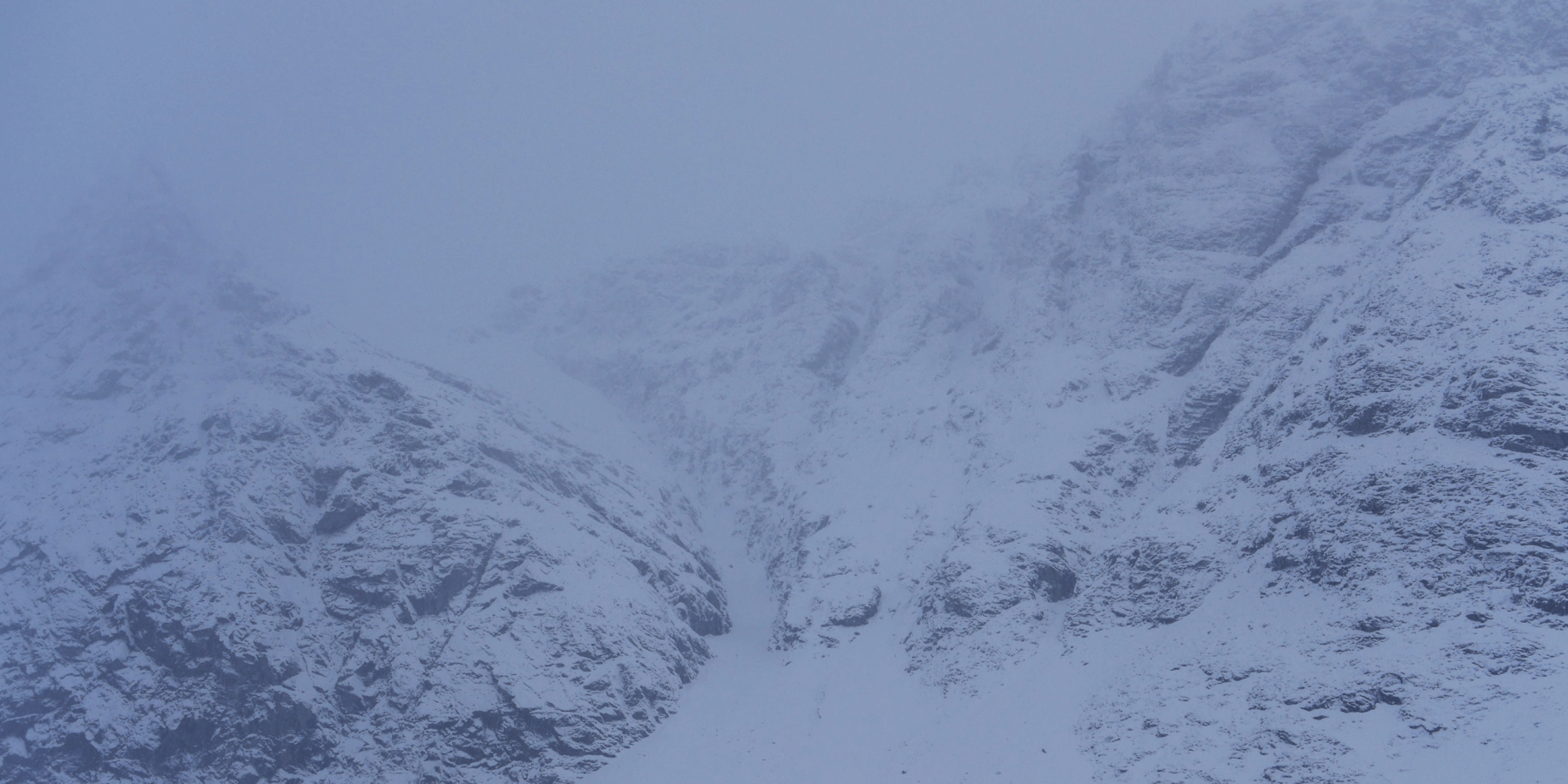 (Above) The clag cleared momentarily and allowed this shot of Coire a Chriochairein’s ENE, E and ESE aspects.