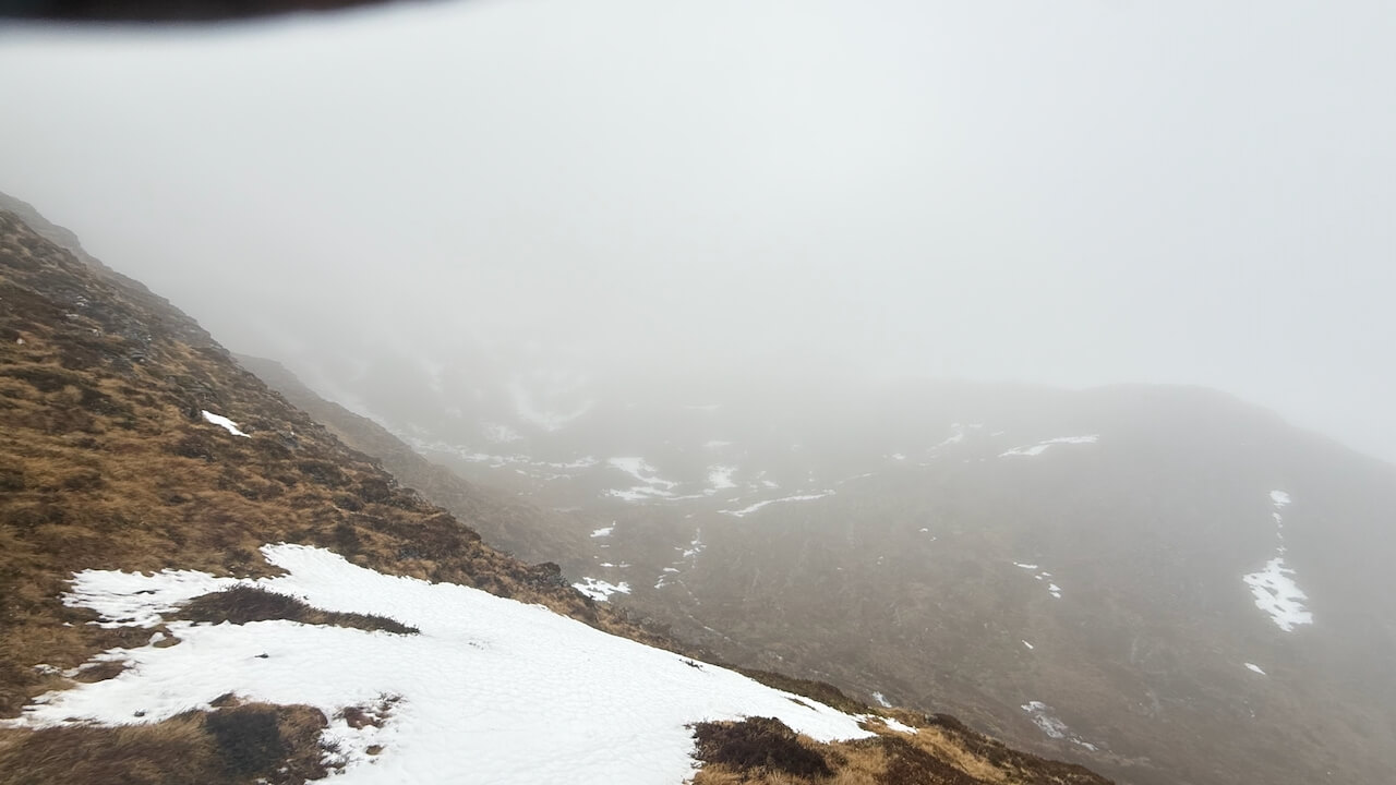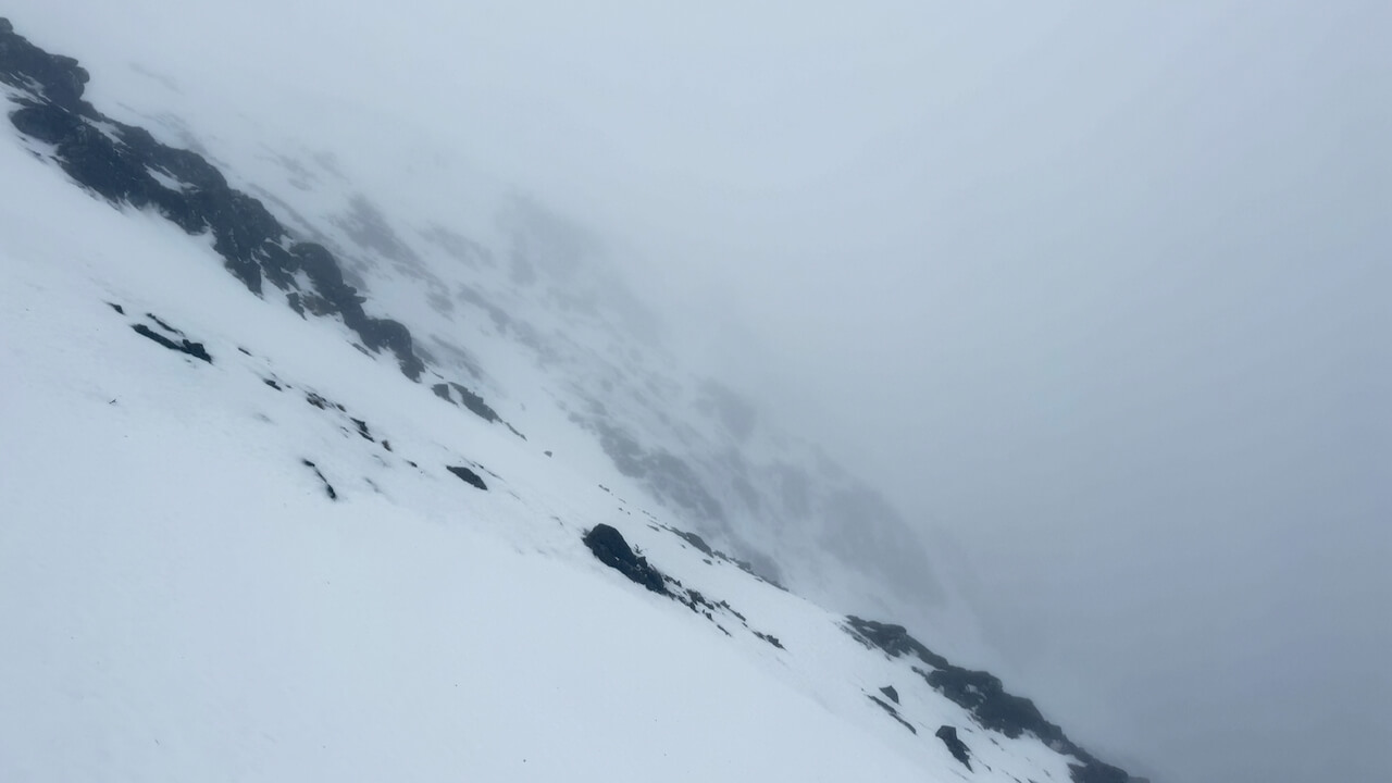 A surprising rapid loss of snow over the last couple of days. Hopefully with cooler temperatures tomorrow this will halt. Still reasonable cover on NW to E aspects. But a very cloudy day today with fairly persistent rain after 11am. Snowfields are pretty hard going which are soft and knee deep in places. A refreshing day!