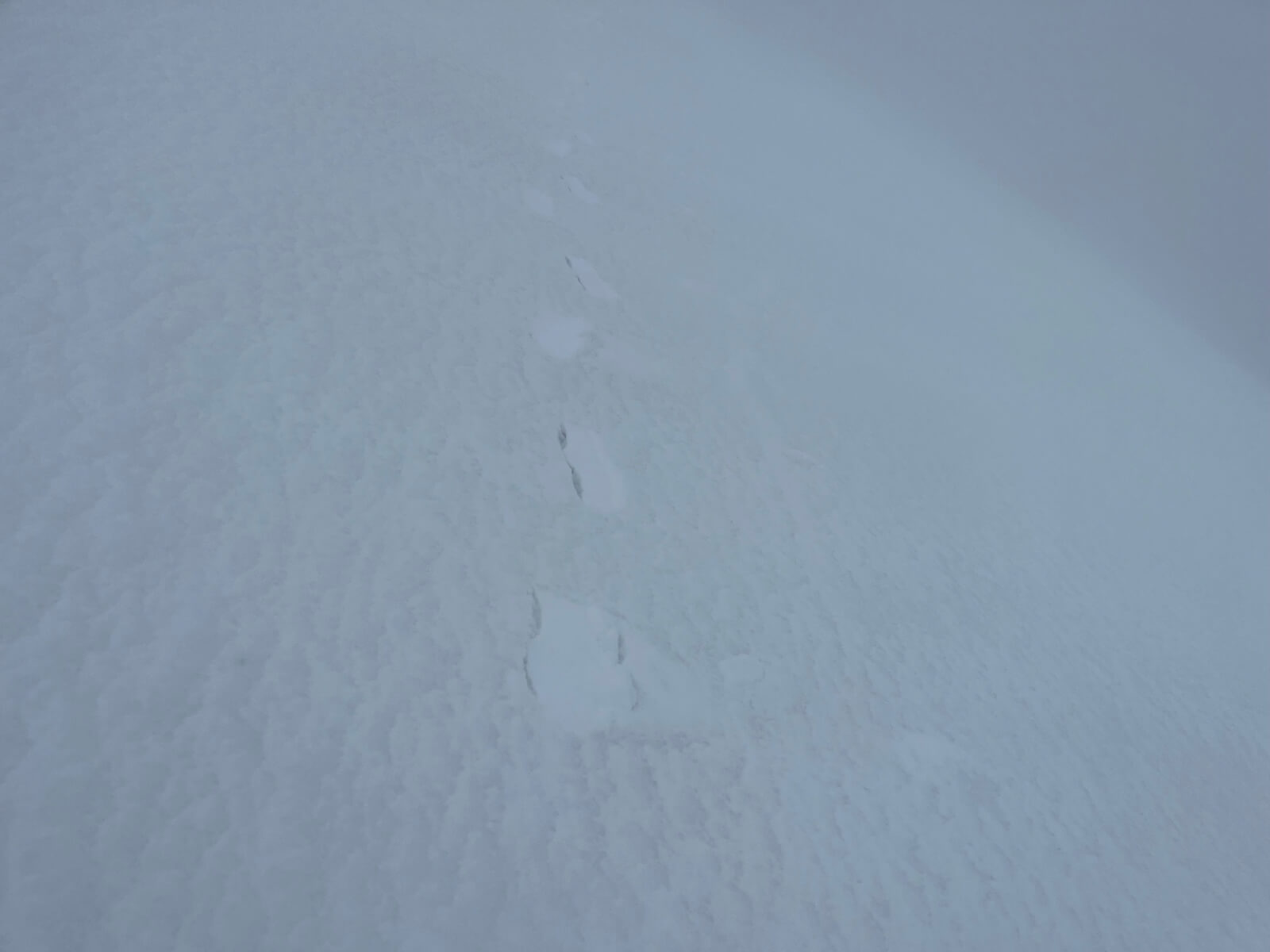 The findings – There was little evidence of any fresh snow on the ground, however there was some snow being blown around in the atmosphere, enough drifting to fill in footprints (see below).