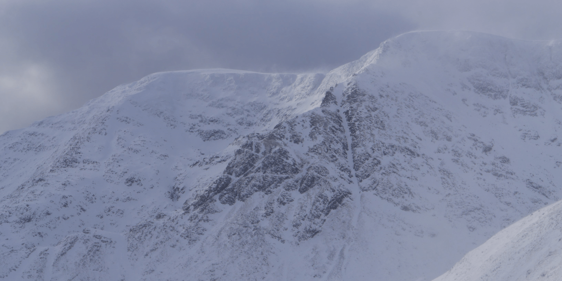 (Above) Inset of Beinn a Chaorainn and its East Ridge (nearest & in profile). Summit spindrift was a feature here all day.