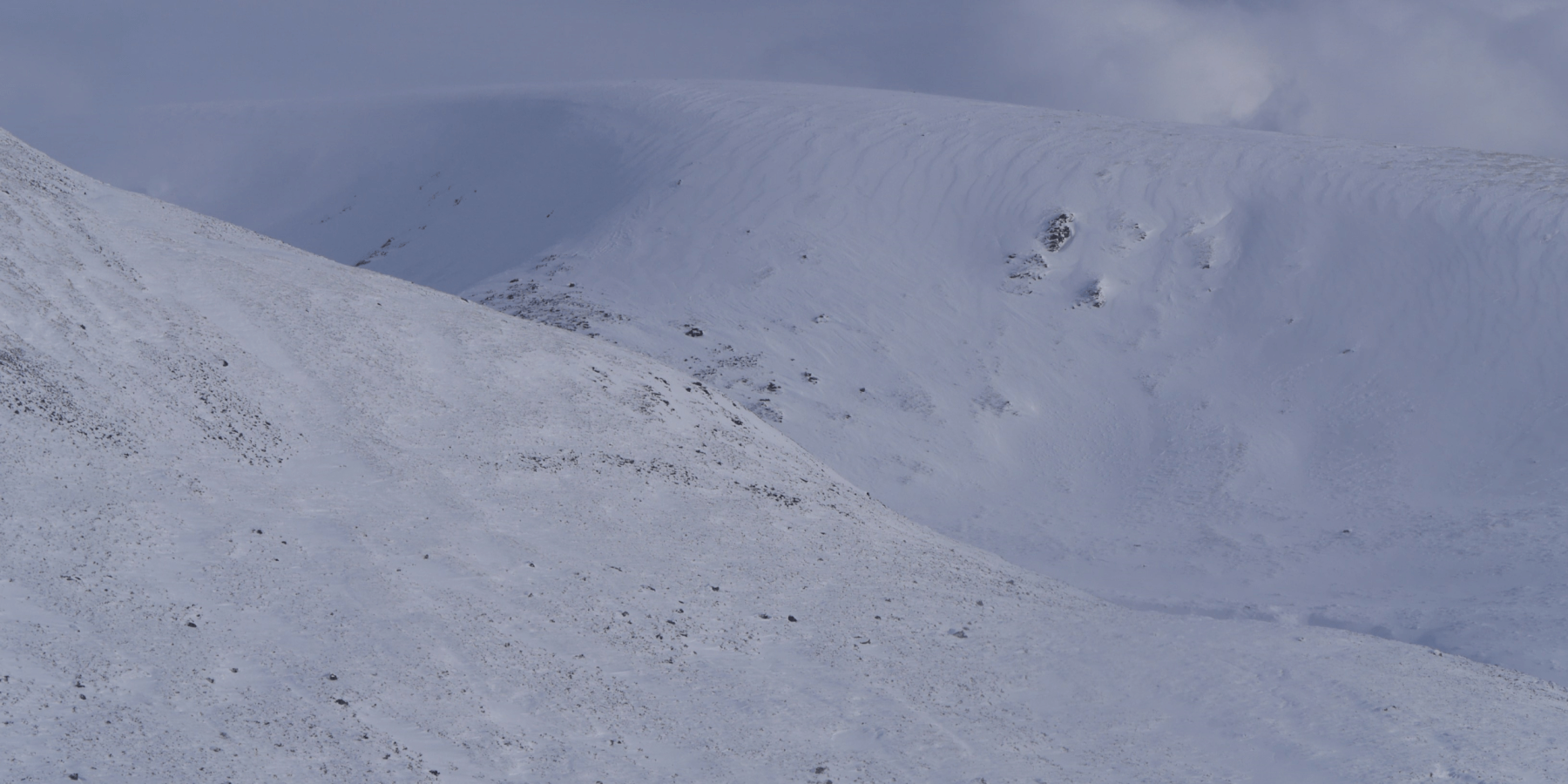 Powerful, unrelenting SE winds and drifting snow characterised the day. 65-70mph winds at 800m made progress painful & painfully slow above that altitude in the Beinn a Chaorainn area. Came across a team of four aspiring East Ridge ascensionists who bailed on the route after being savagely buffeted at about the same altitude as above. Similar story for a lone ski-tourer whose quest for a tour to Bealach a Bharnish > Beinn a Chaorainn > Beinn Teallach suffered the same fate, also at 800m. As per usual, the video below doesn’t quite capture the full drama of the conditions.
