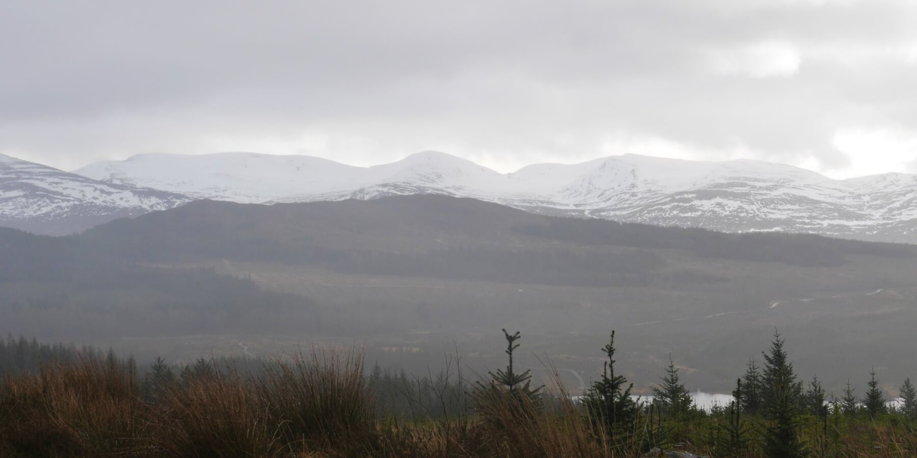 Poor quality mountain day on Beinn a Chaorainn. With the freezing level around summits the persistent precip fell as rain at most levels and sleet or snow only above about 1000m. Visibility was poor, too, so nil opportunity to spot any old avalanche/cornice debris from the past few days.