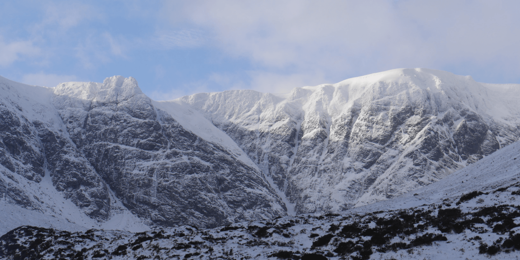 (Above) The Inner Coire of Coire Ardair and The Window. The ascent/descent to/from The Window was hard and icy in places today.