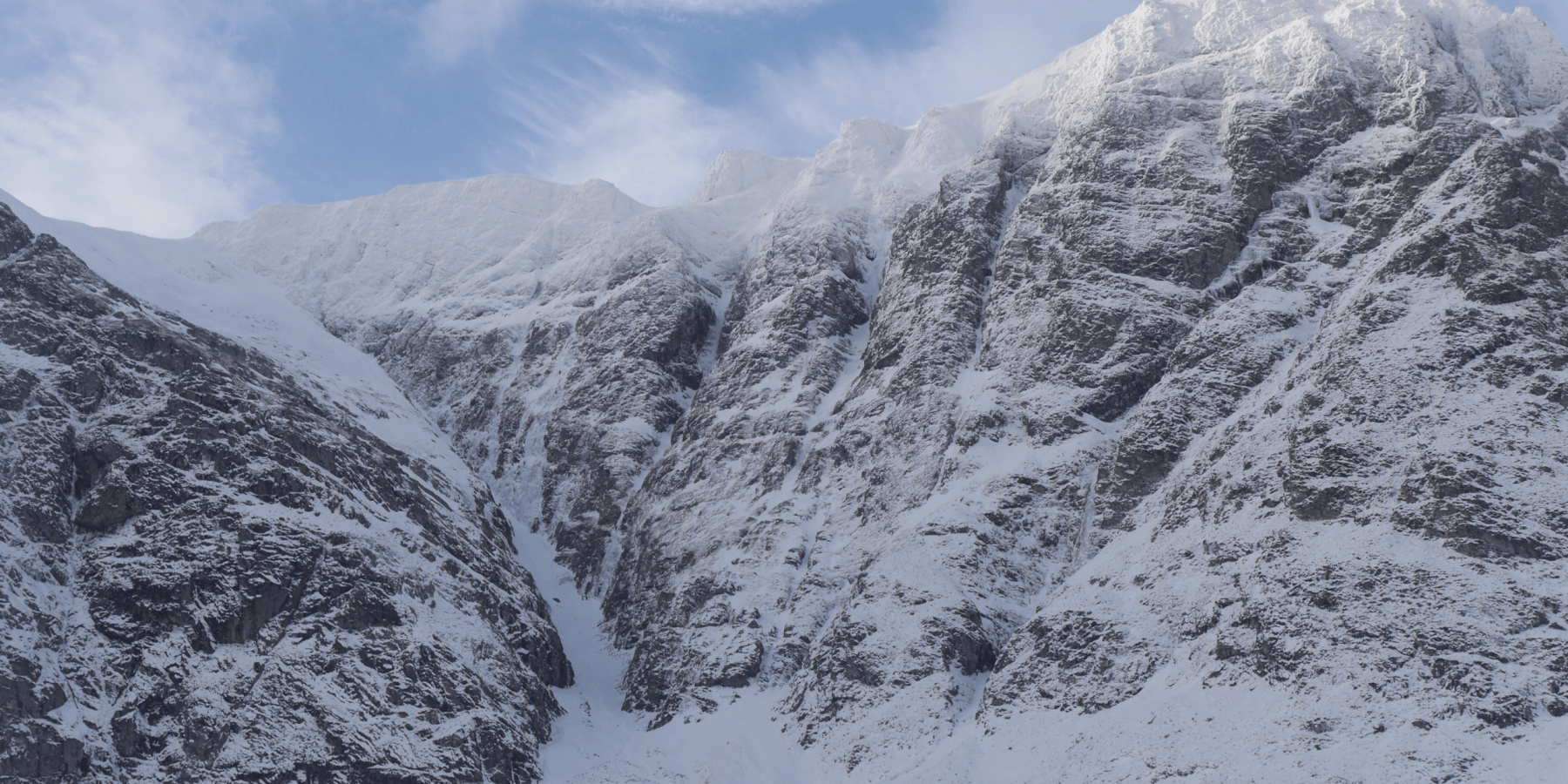(Above) Easy Gully and the Post Face of Coire Ardair. ‘Last Post’, one of Creag Meagaidh’s signature ice routes in Easy Gully, has also been a very popular choice. Let’s hope it can survive the depredations of the forthcoming wet and mild fews days.