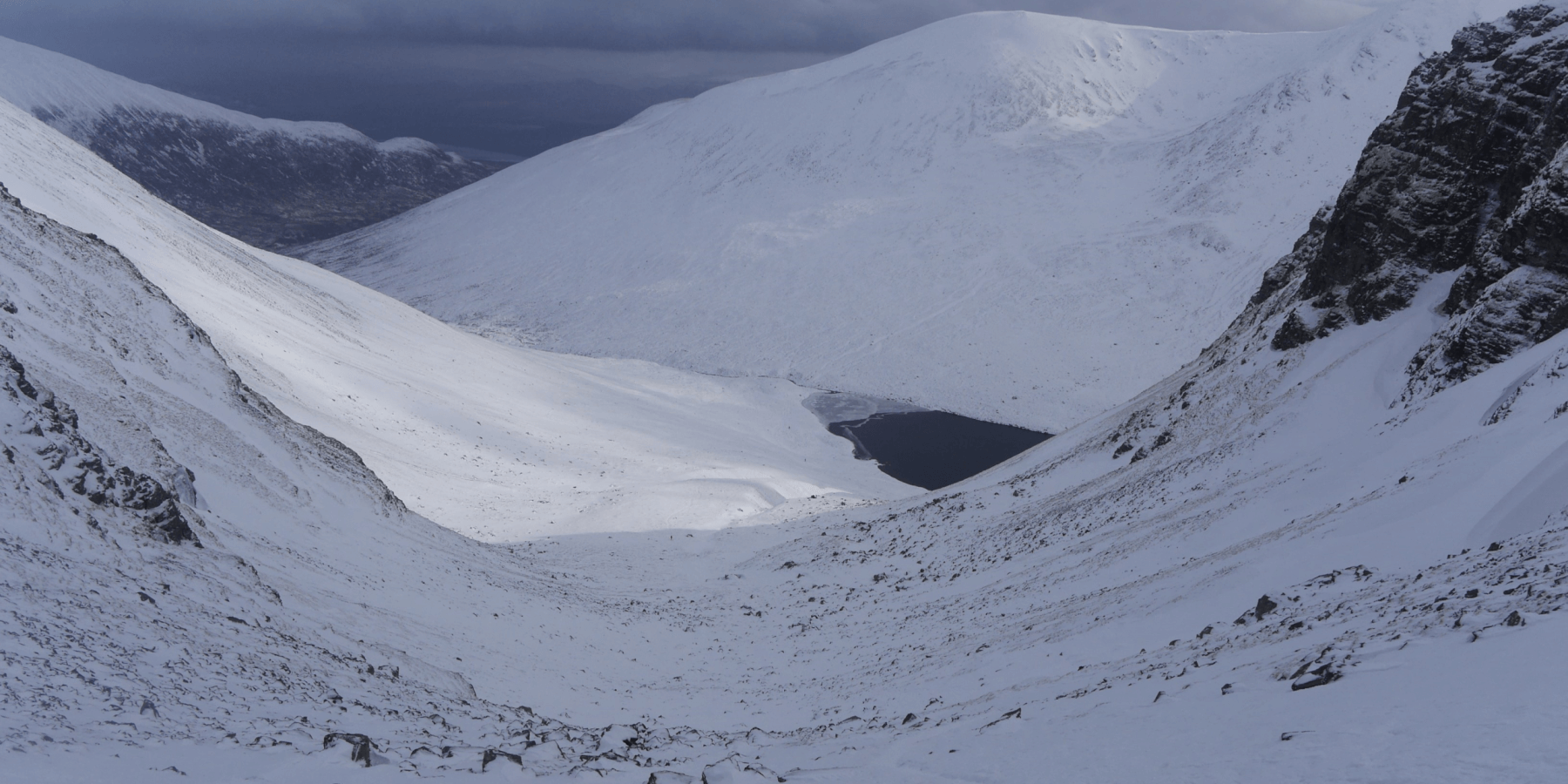 (Above) The view down into the Inner Coire and Lochan a Choire.