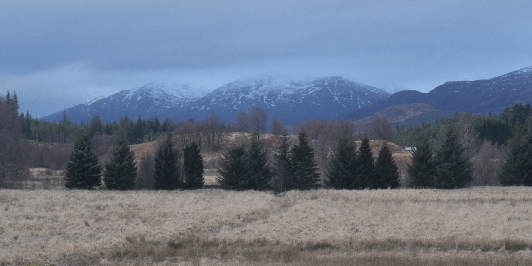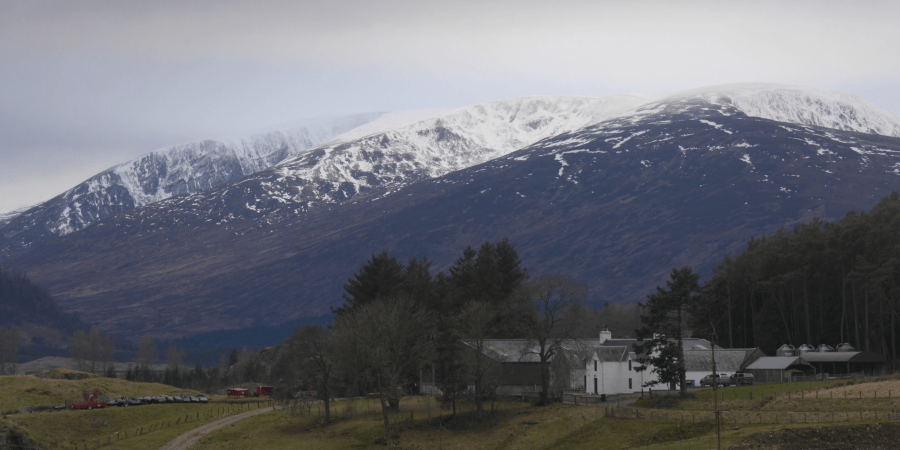 (Above) The Carn Liath massif as viewed from Laggan. L to R: Coire nan Gall, Coire Dubh and Coire a Bheinn.