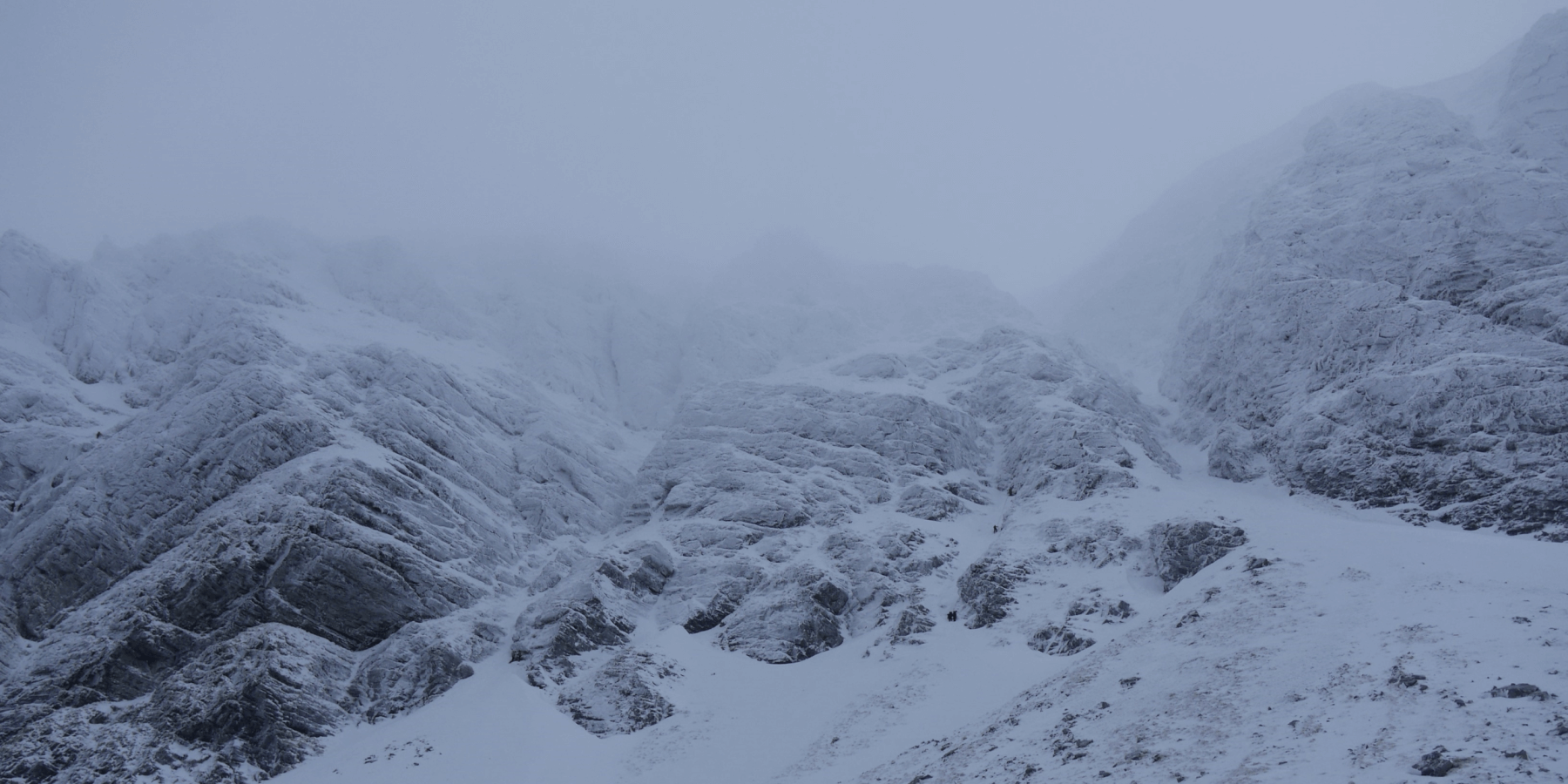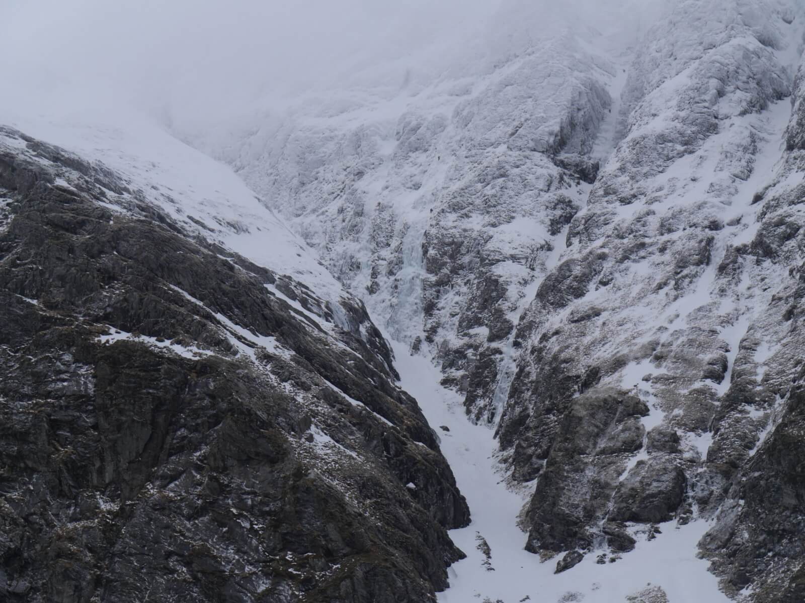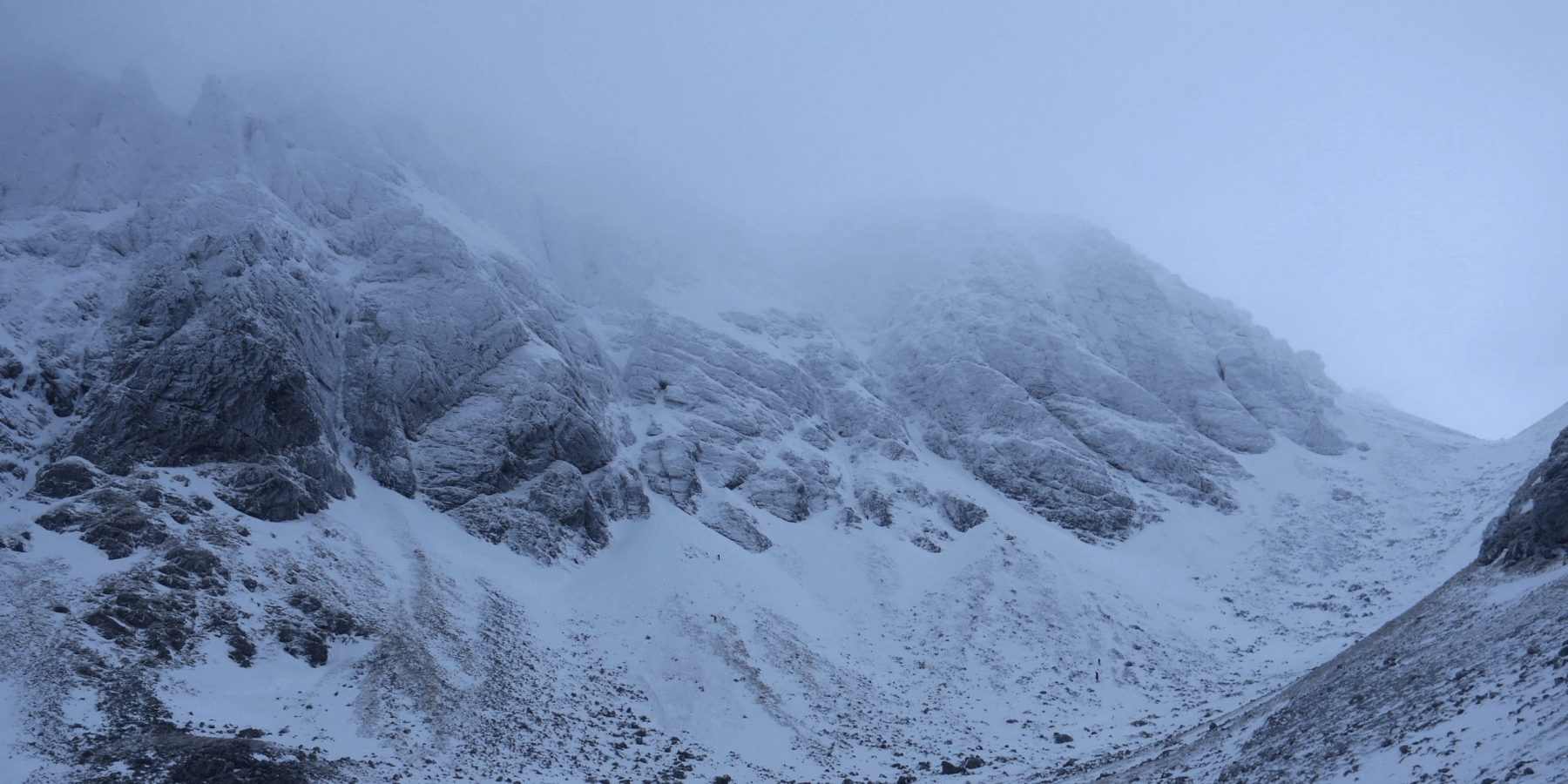 (Above) The buttresses and gullies of the Post Face of Coire Ardair.