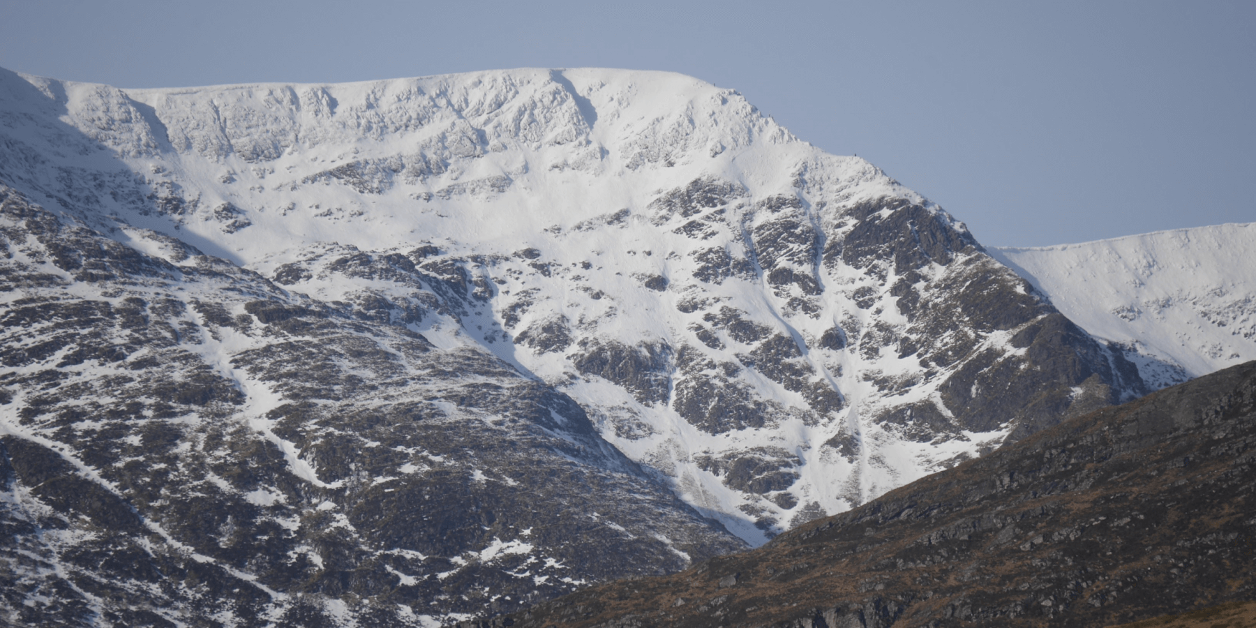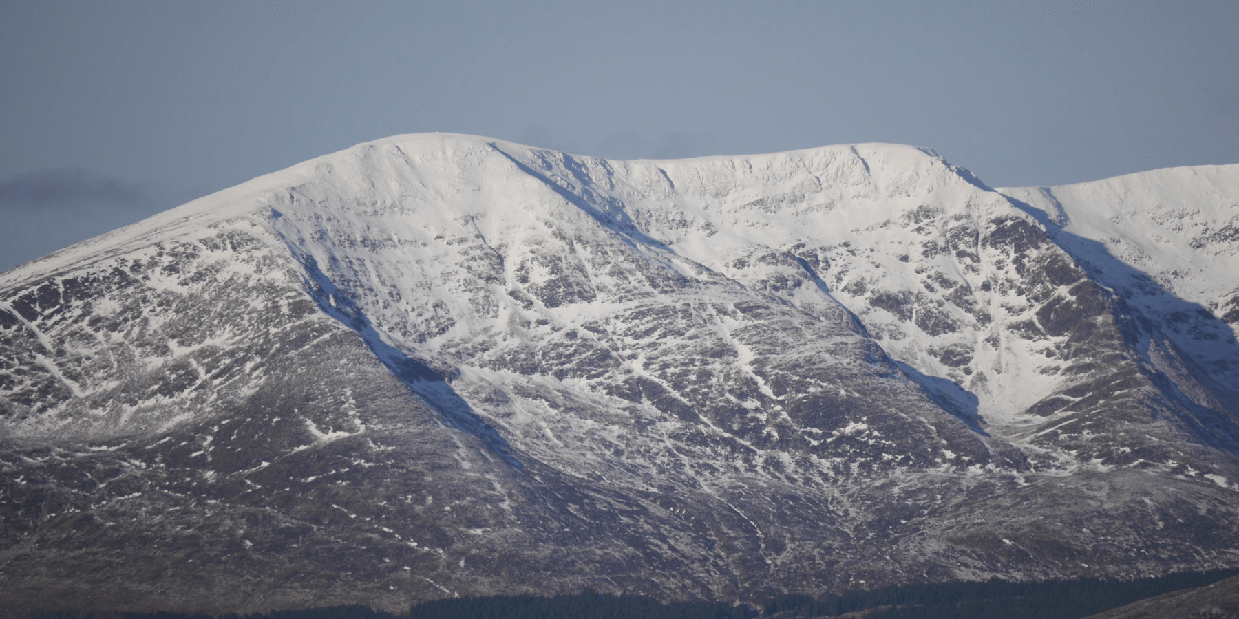 (Above) Telephoto shot of the hulking mass of Beinn a Chaorainn.