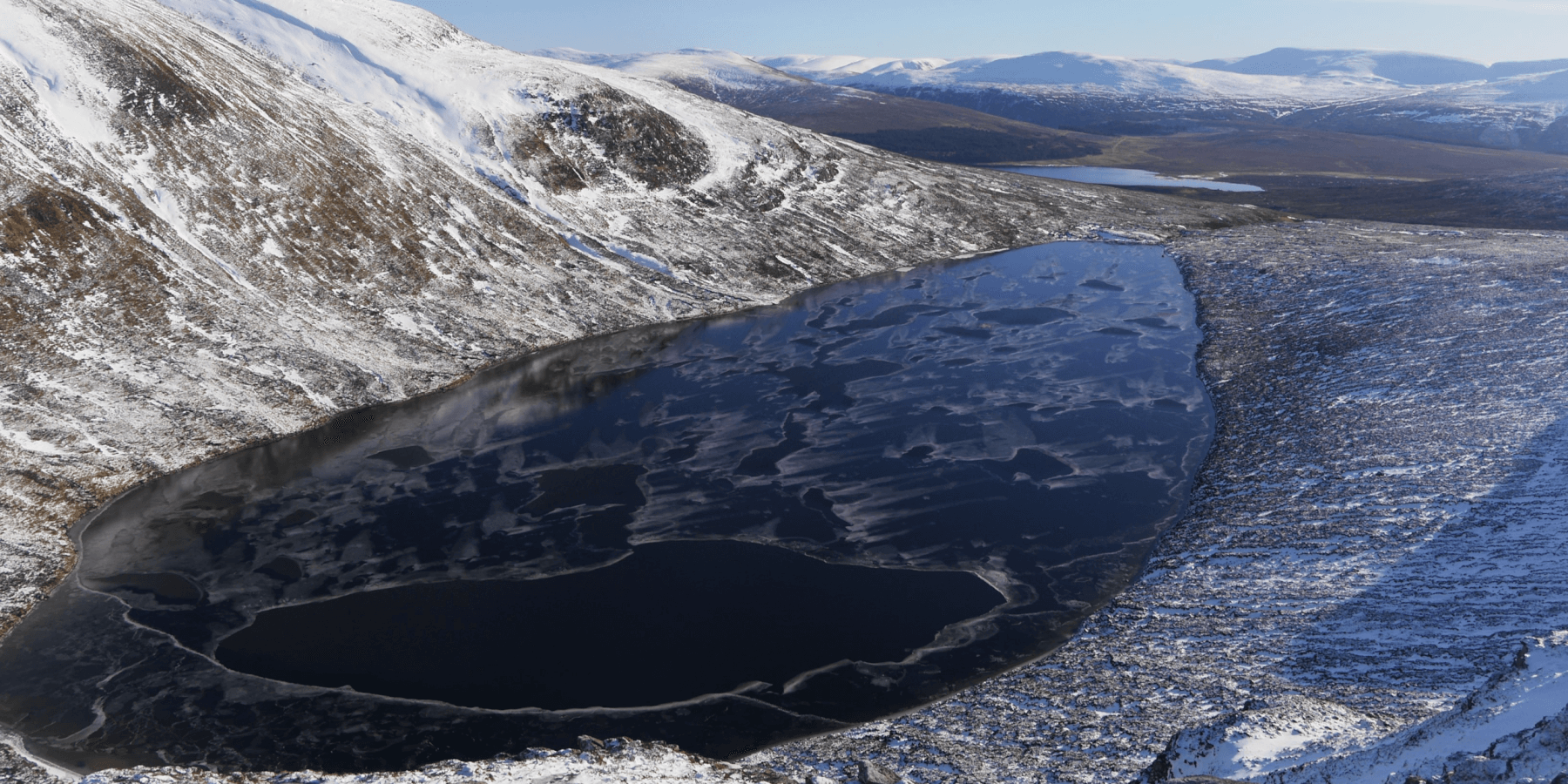 (Above) En route to Geal Charn 1049m paid a visit to Bealach Leamhain and its namesake loch. In a few years time there’ll be a 30m high dam wall at the far end of this remote loch.