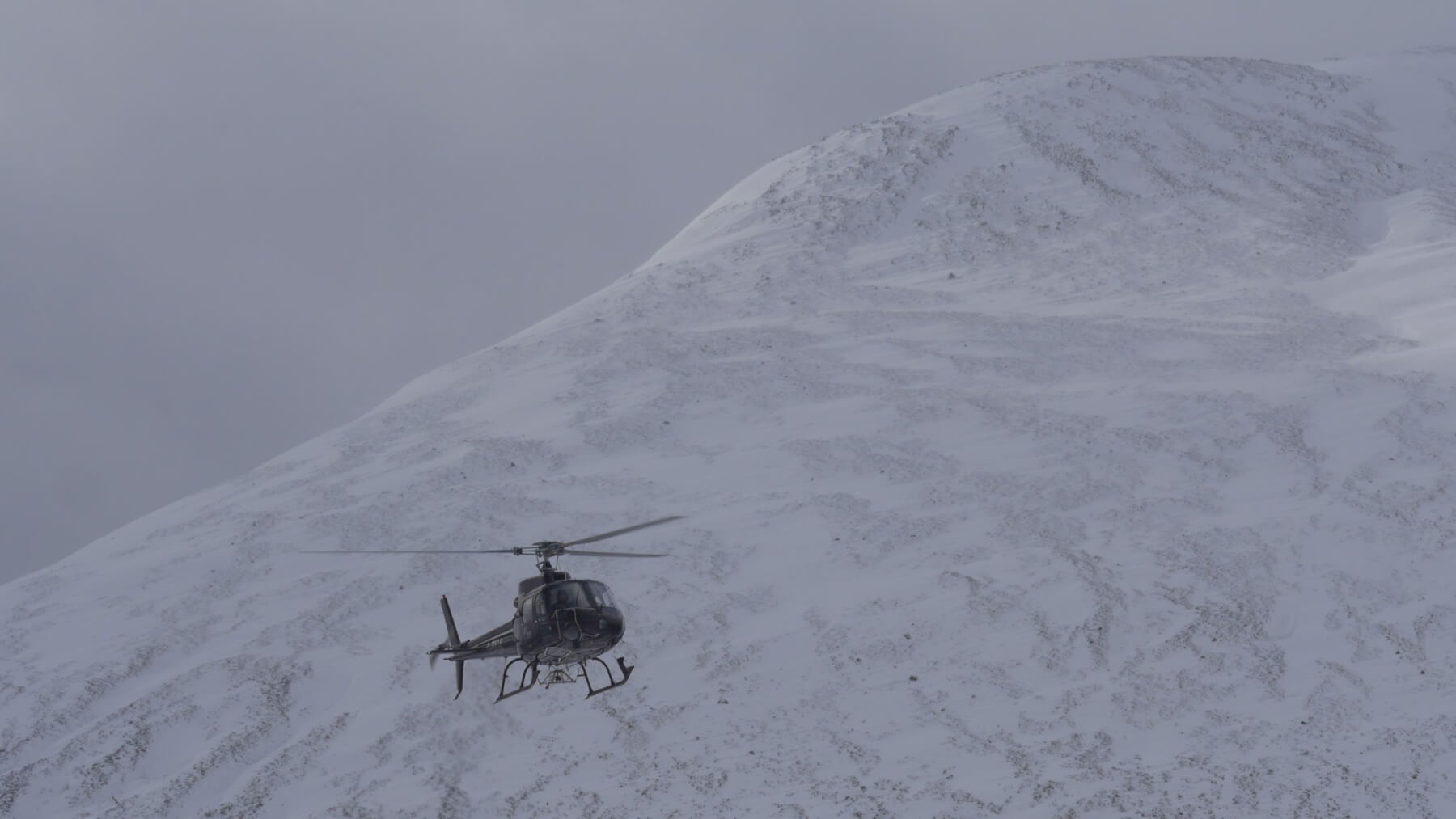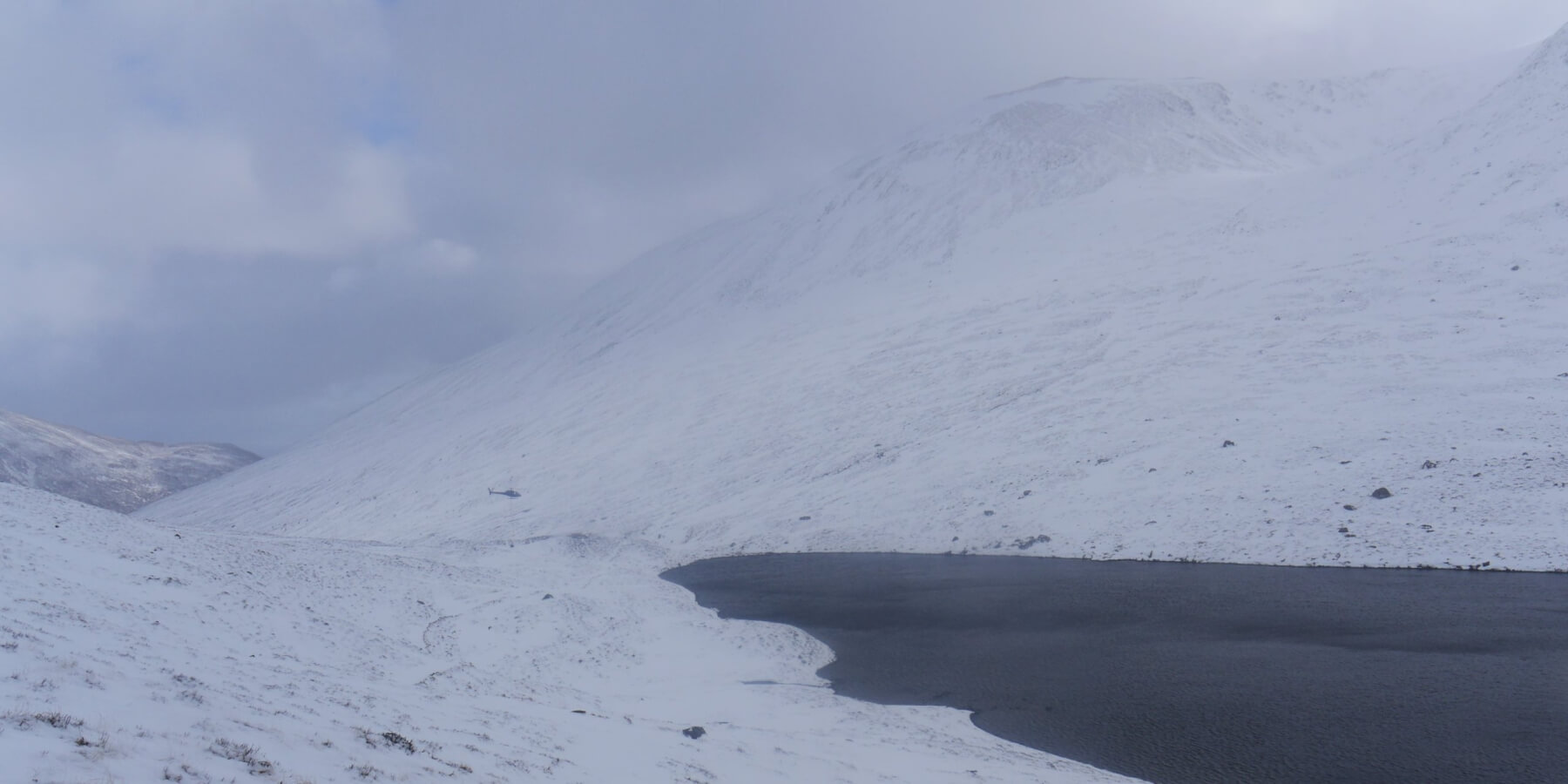 (Above) Nature Scotland are planning to repair/restore parts of the Coire Ardair path and engaged the services of a helicopter to uplift aggregate from Aberarder to stash at strategic points along the path. Not the best day for flying! The helicopter here is on a scoping run to assess conditions and was being thrown around a fair amount in lower Coire Ardair…