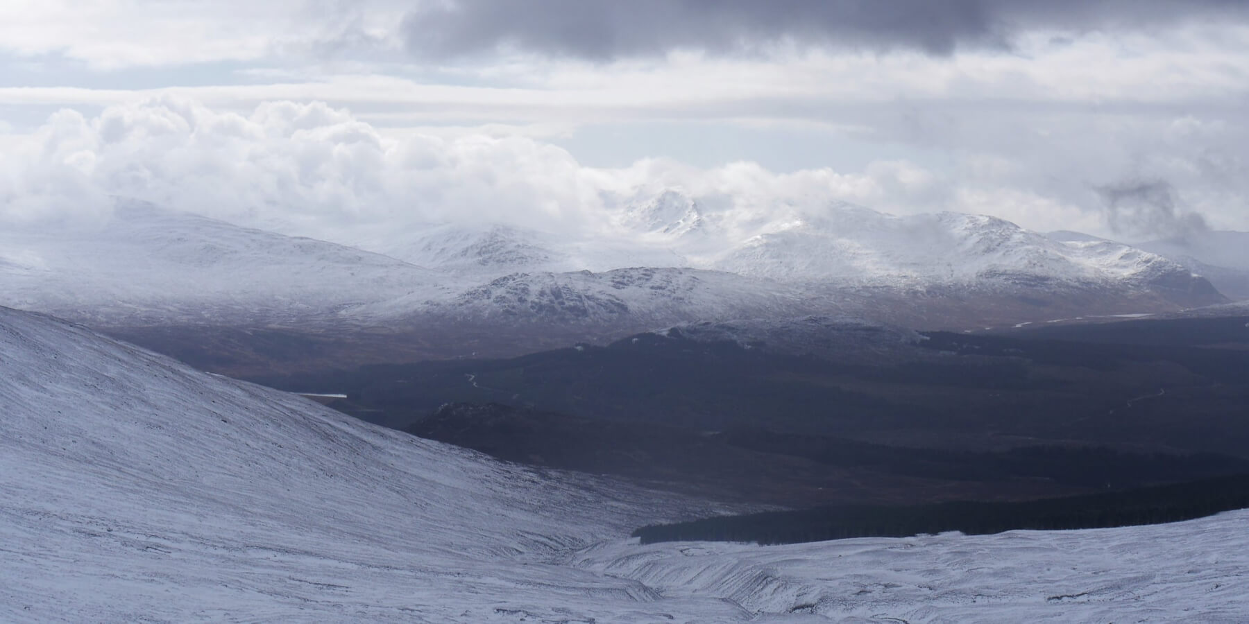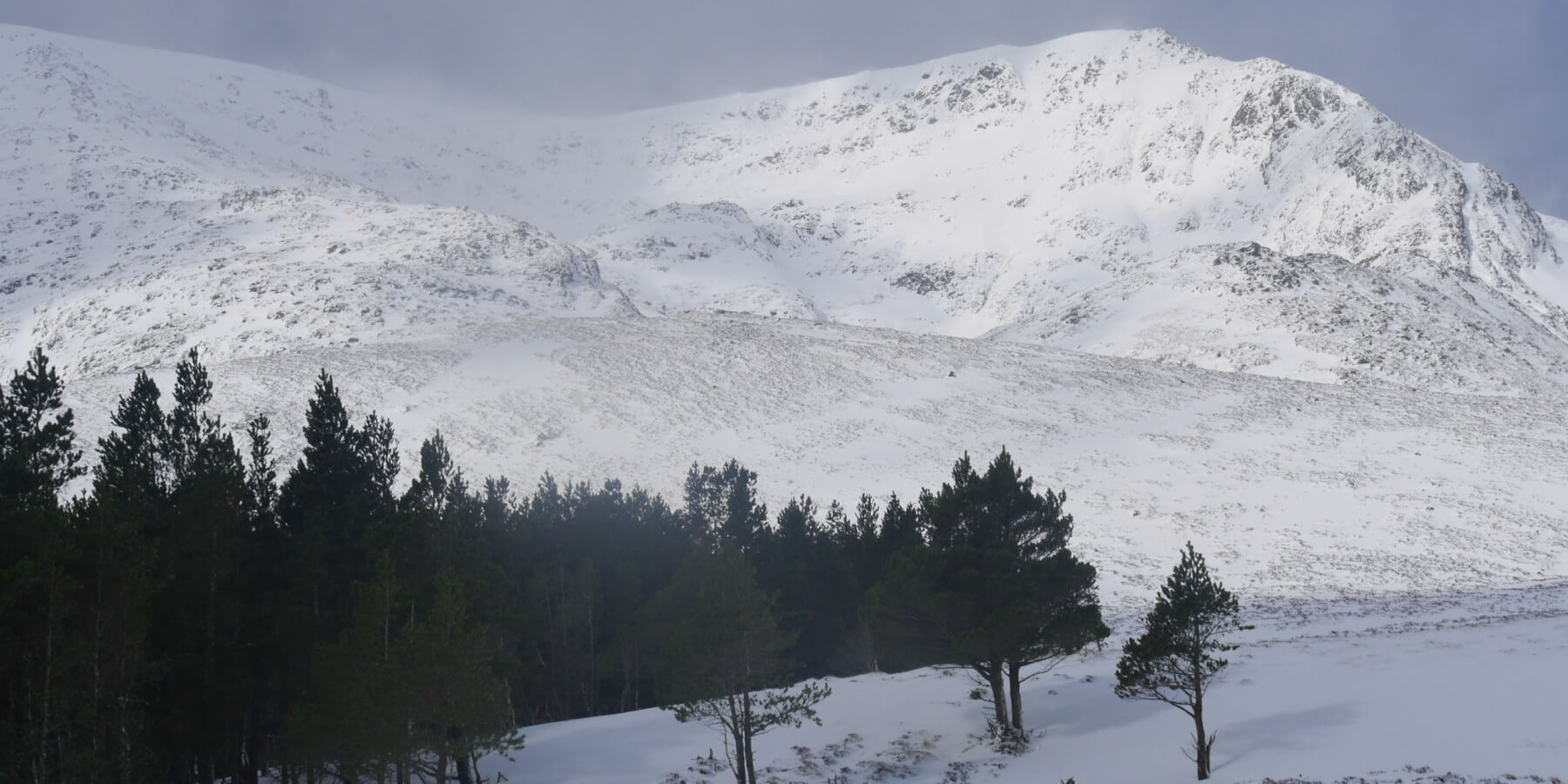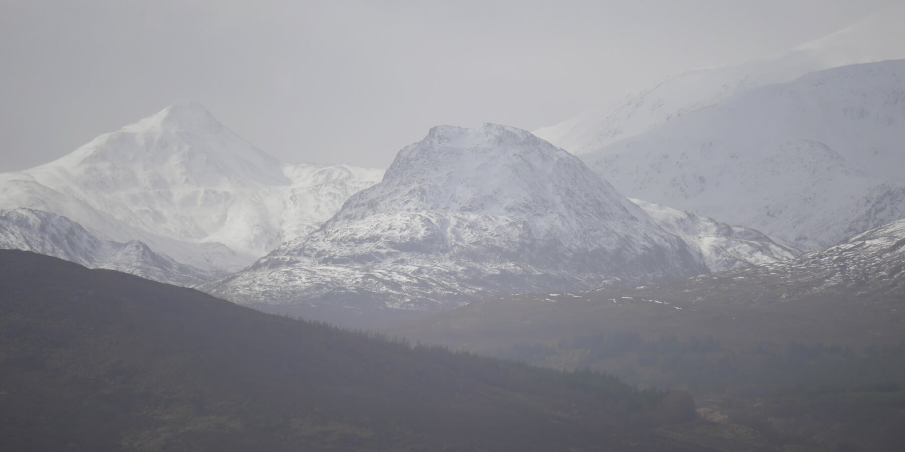 (Above) Beinn a Chaorainn’s East Ridge, here showing its snowy E and SE-facing aspects.