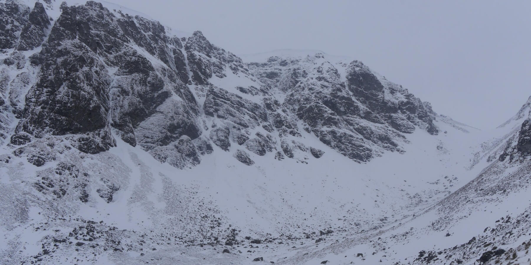 (Above) The NNE-facing crags of the Inner Coire of Coire Ardair and The Window extreme right. Size 0.5 avalanche from close to the crags near the summit of The Window, again probably an overnight event.